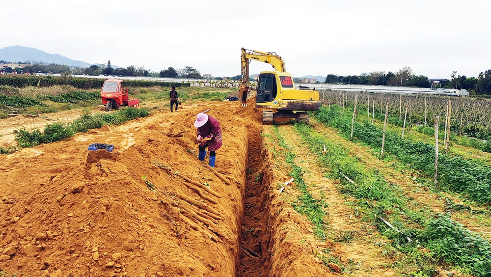 不負好春光,采摘正當時。每年12月到次年4月是淮山、粉葛的收獲季節(jié)。在惠陽區(qū)平潭鎮(zhèn)新圩村,慕名而來采摘、購買淮山、粉葛的游客不少。這個曾經(jīng)因沙地、竹林遍布而面臨溫飽難解決的小村莊,如今正因特色農(nóng)產(chǎn)品淮山、粉葛走出一條致富路。當?shù)夭粩嗤ㄟ^農(nóng)業(yè)與食品加工業(yè)、文旅產(chǎn)業(yè)的深度融合,走出了一條“接二連三”融合發(fā)展的新路徑,為鄉(xiāng)村振興探索出新路子。