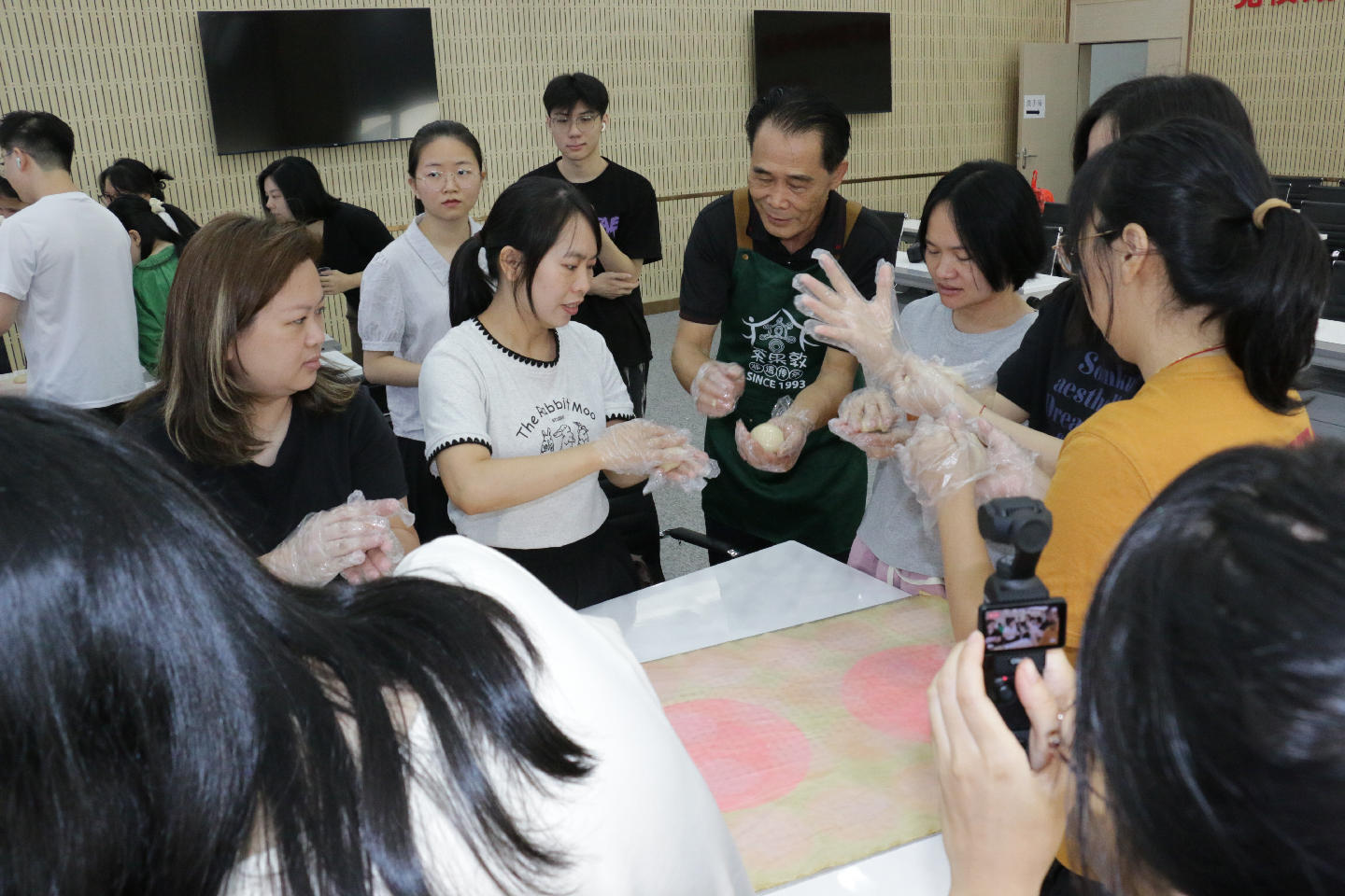 活動開始,實踐所工作人員為現(xiàn)場居民生動講述了七夕的歷史淵源與文化習(xí)俗。從牛郎織女的美麗傳說,到“乞巧”傳統(tǒng)非遺項目,再到惠陽淡水本地的民間風(fēng)俗,工作人員娓娓道來,并重點介紹了極具地方特色的非遺美食——客家喜粄;顒犹貏e邀請了非遺傳承人現(xiàn)場教學(xué),詳細講解喜粄的文化背景與制作技藝,并進行了實操演示。