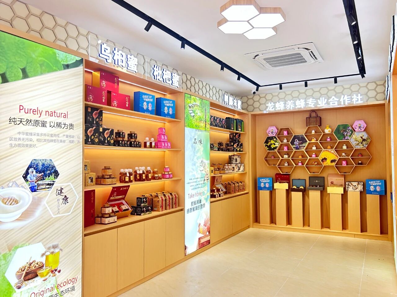 龍門(mén)縣養(yǎng)蜂研究所的展示區(qū),鴨腳木蜜、姜檸蜂蜜等產(chǎn)品整齊陳列。 惠州日?qǐng)?bào)記者黃宇翔 通訊員龍融心 攝