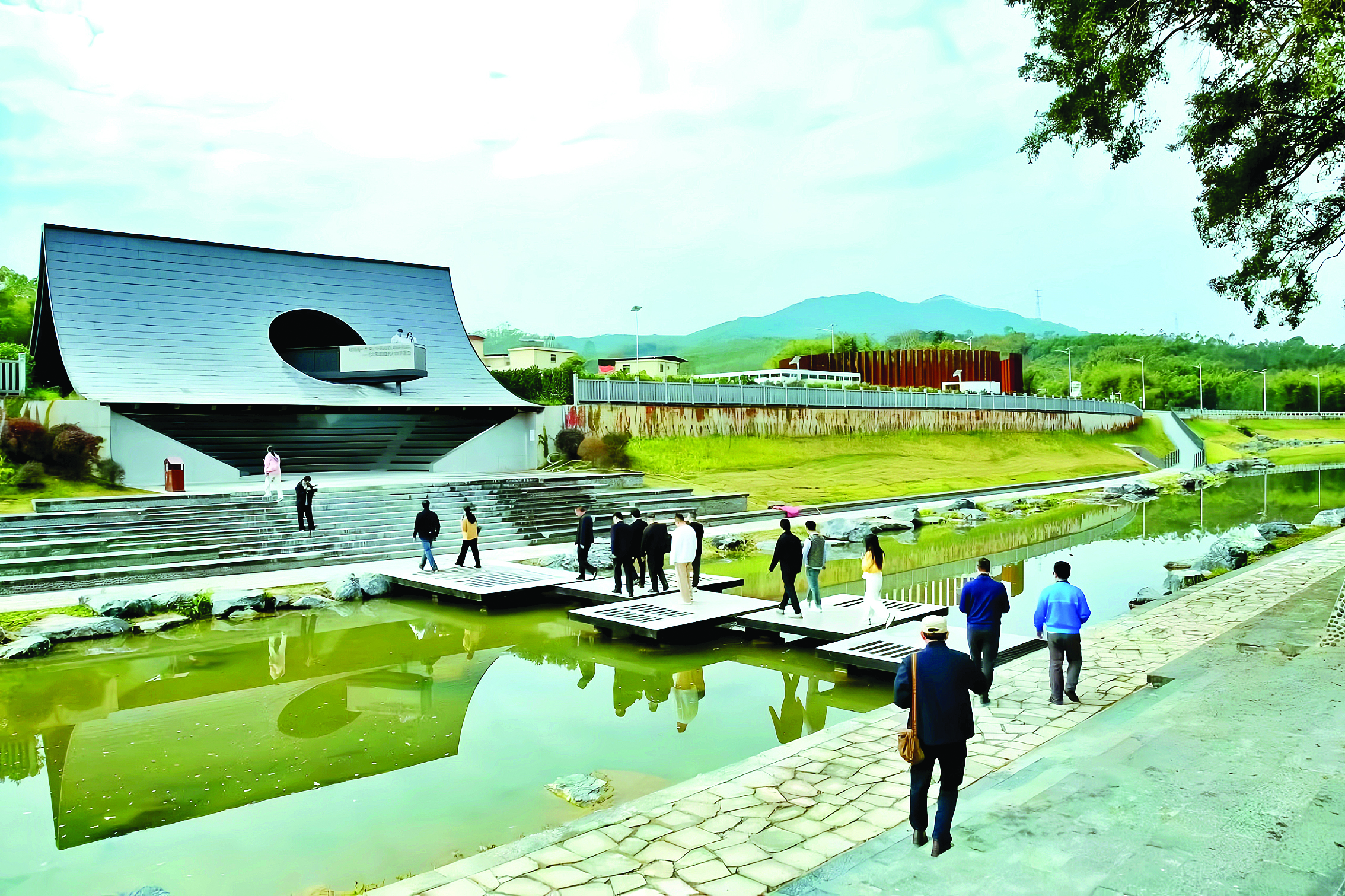 驛站不僅是休憩節(jié)點,更是文旅融合的展示窗口,古村活化與藝術(shù)賦能讓鄉(xiāng)村文旅更具深度。龍門縣實施建筑藝術(shù)計劃,啟動“四村一廠一線”示范項目,吸引全球頂尖設(shè)計團隊參與鄉(xiāng)村建設(shè),讓空心村變身藝術(shù)地標(biāo)。其中,龍華鎮(zhèn)長灘村傳統(tǒng)村落活化項目作為“百千萬工程”重點項目,采用“企業(yè)+村集體+村民”共富模式,整合閑置房,修繕古祠堂及歷史建筑,植入溫泉民宿、農(nóng)業(yè)研學(xué)等新業(yè)態(tài),讓“沉睡”的古村落煥發(fā)新生;麻榨鎮(zhèn)中心村“古榕文學(xué)村”引進(jìn)文學(xué)咖啡、糧倉書局等業(yè)態(tài),為鄉(xiāng)村注入文藝活力,實現(xiàn)藝術(shù)賦能與產(chǎn)業(yè)增收雙贏。“以前村道狹窄、人氣冷清,如今依托218最美旅游公路,文學(xué)主題空間不斷涌現(xiàn),村容村貌煥然一新,村民的日子也越來越有奔頭!敝行拇妩h總支書記、村委會主任張奇峰笑著說。