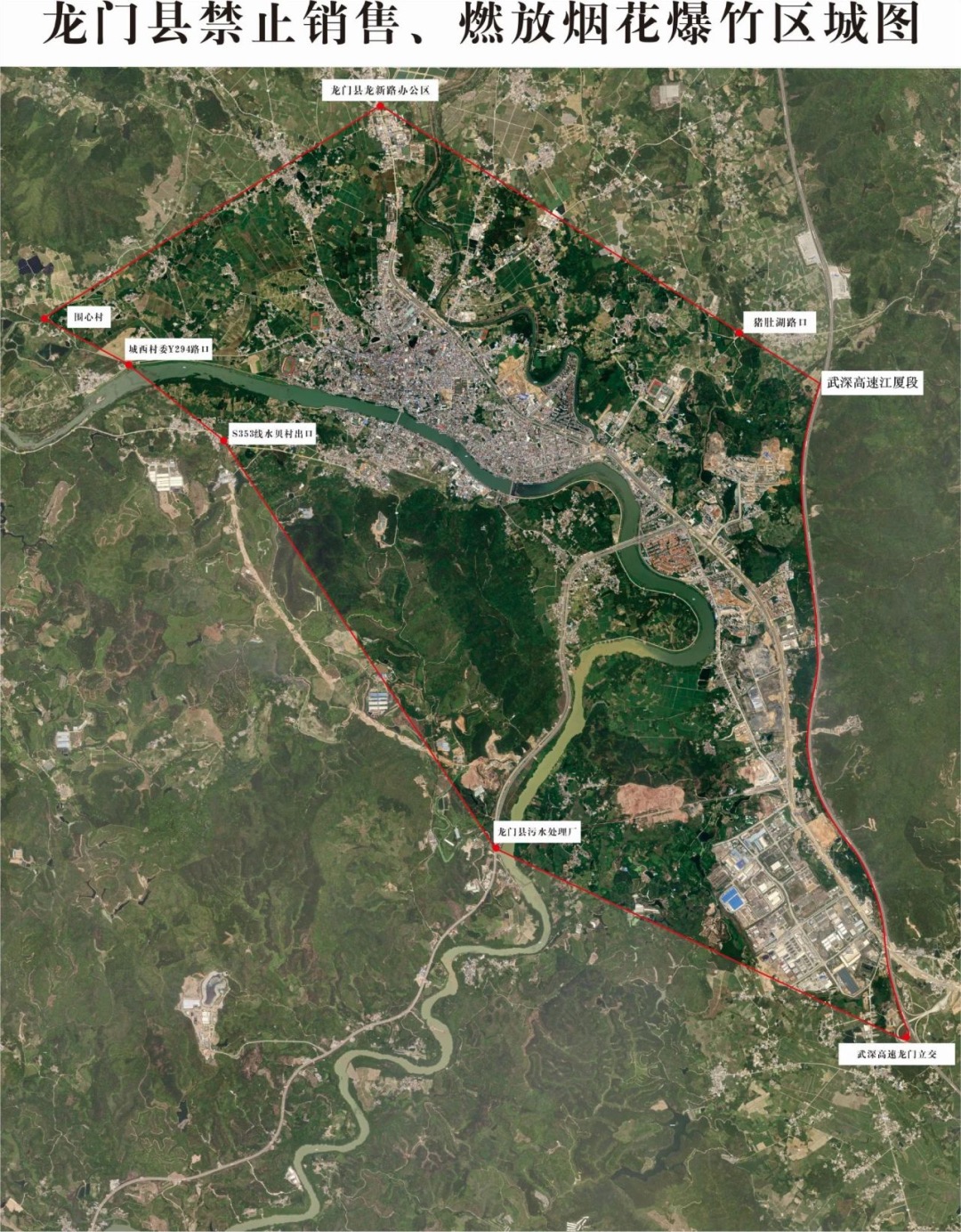 為有效防范因煙花爆竹引發(fā)的火災(zāi)、人身傷害事故,減少大氣污染,切實(shí)保障人民群眾生命財(cái)產(chǎn)安全和身體健康,龍門明確劃定縣城及周邊部分區(qū)域?yàn)闊熁ū窠劢艆^(qū)(具體范圍詳見下圖),嚴(yán)禁任何單位或個(gè)人在該區(qū)域內(nèi)銷售、儲存、燃放煙花爆竹。