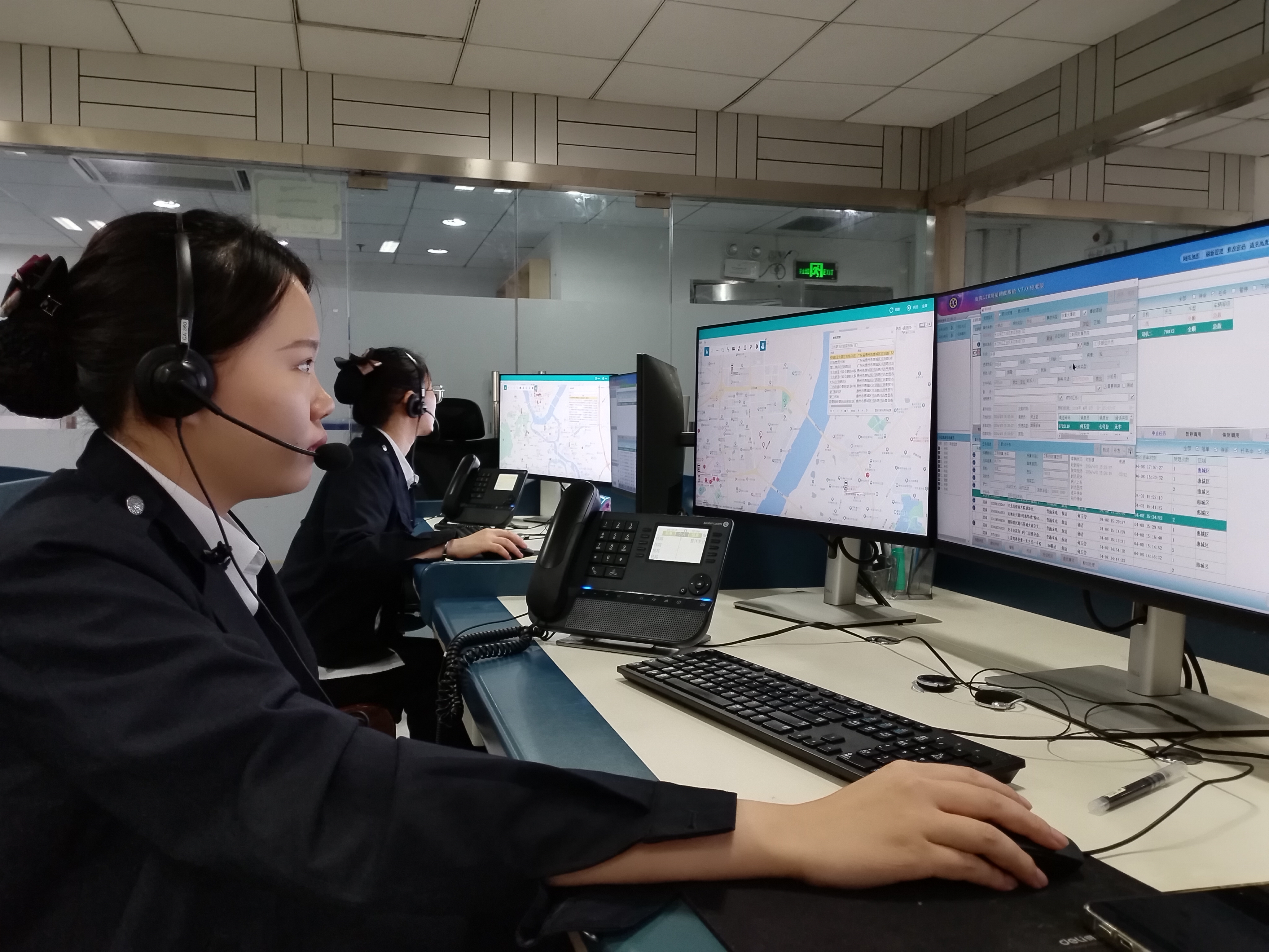 調(diào)度員何玉瑩在接聽(tīng)市民來(lái)電;葜萑?qǐng)?bào)記者周智聰 攝