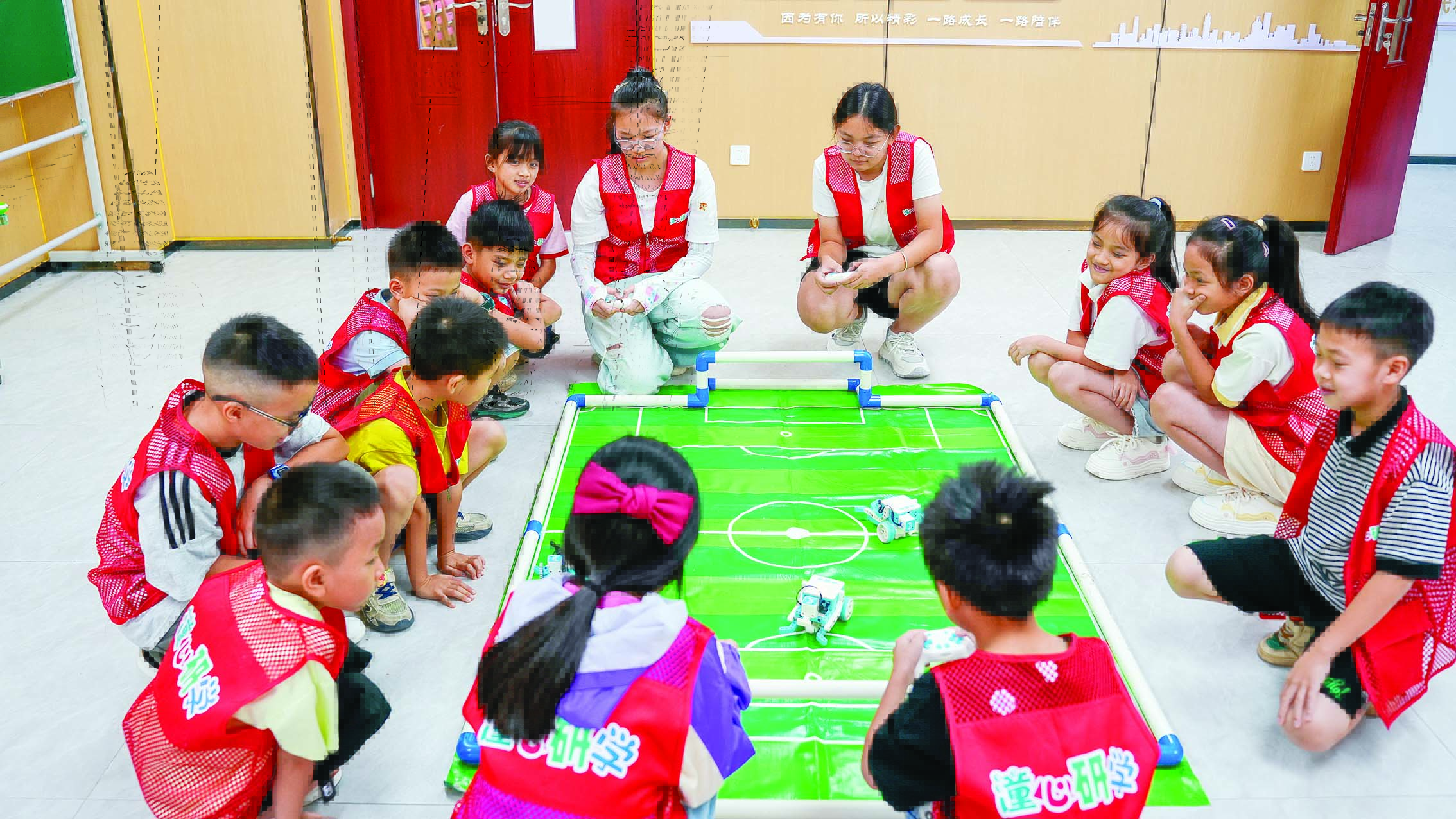 暑期研學中,足球機器人比賽引起孩子們極大參與熱情。