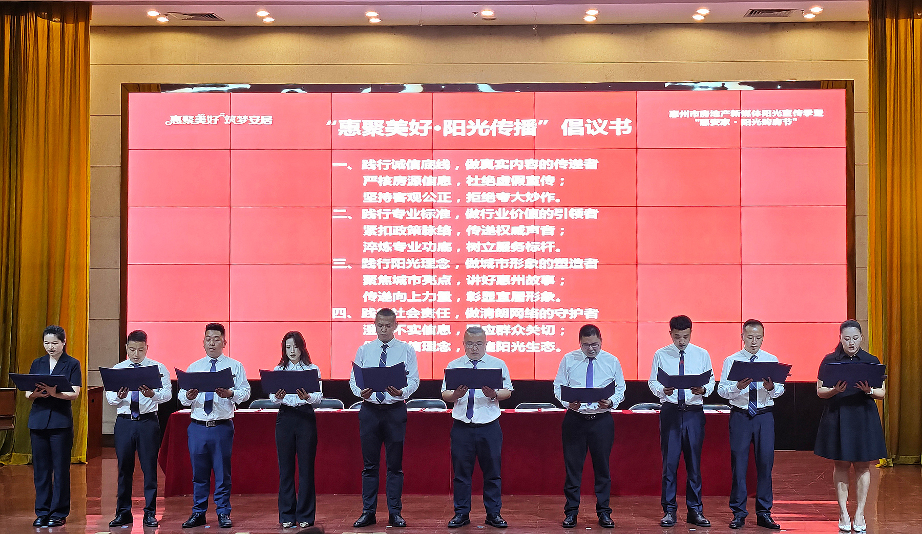 涉房新媒體代表宣讀《惠聚美好·陽(yáng)光傳播倡議書(shū)》,并簽署《惠州市涉房新媒體自律公約》。