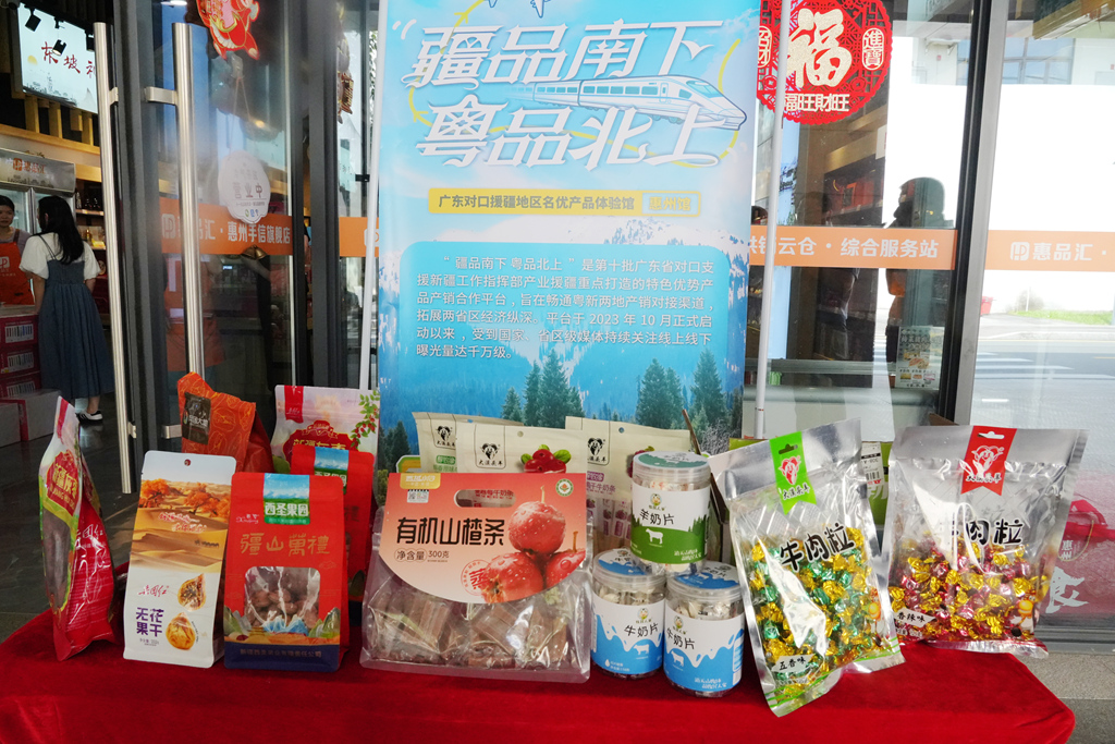 惠州館位于惠州市市民服務(wù)中心智慧停車場(chǎng)臨街商鋪,由惠州日?qǐng)?bào)社旗下惠州報(bào)業(yè)新文創(chuàng)文化傳播有限公司負(fù)責(zé)具體運(yùn)營工作。作為“疆品南下 粵品北上”工程在惠州的落地成果,該館自2024年投入運(yùn)營以來,累計(jì)銷售新疆產(chǎn)品40余萬元,成為展示新疆名優(yōu)產(chǎn)品的重要窗口,有效推動(dòng)新疆產(chǎn)品融入大灣區(qū)市場(chǎng),深化粵疆兩地經(jīng)濟(jì)協(xié)作與文化交融。