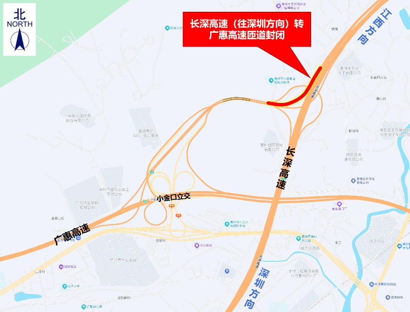 長深高速(往深圳方向)轉(zhuǎn)廣惠高速匝道臨時封閉繞行示意圖
