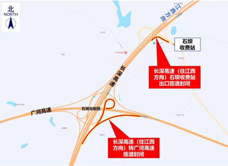 9月12日10:00-15日10:00,長深高速江西方向石壩北樞紐轉(zhuǎn)廣河高速匝道臨時封閉,禁止車輛通行;長深高速江西方向石壩收費站出口臨時封閉,禁止車輛通行。交通管制實施期間,途經(jīng)車輛請?zhí)崆霸谙笊筋^立交轉(zhuǎn)韶惠高速再轉(zhuǎn)廣河高速或在麻陂收費站下高速繞行。
