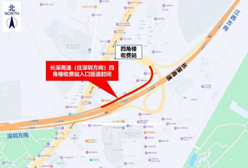 長深高速(往深圳方向)四角樓收費站繞行示意圖