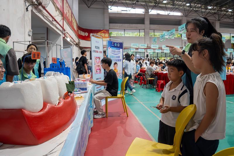 活動(dòng)現(xiàn)場(chǎng),多家口腔會(huì)員單位醫(yī)護(hù)人員駐點(diǎn)服務(wù),為師生及家長(zhǎng)提供免費(fèi)口腔檢查與個(gè)性化健康指導(dǎo)。從“巴氏刷牙法”實(shí)操演示、牙線正確使用方法,到“減少吃糖次數(shù)、限制碳酸飲料、多吃蔬果”的飲食建議,醫(yī)生們指導(dǎo)幫助市民將護(hù)牙知識(shí)轉(zhuǎn)化為日常習(xí)慣;葜菪l(wèi)生職業(yè)技術(shù)學(xué)院口腔醫(yī)學(xué)專(zhuān)業(yè)學(xué)生志愿者同步發(fā)放《口腔健康手冊(cè)》及定制牙線、牙膏等實(shí)用護(hù)牙包!耙郧坝X(jué)得牙疼才看醫(yī)生,今天不僅查出牙齒問(wèn)題,還學(xué)會(huì)了科學(xué)護(hù)牙,明白了口腔健康和全身健康的關(guān)系!”一名剛接受完檢查的新生感慨道。
