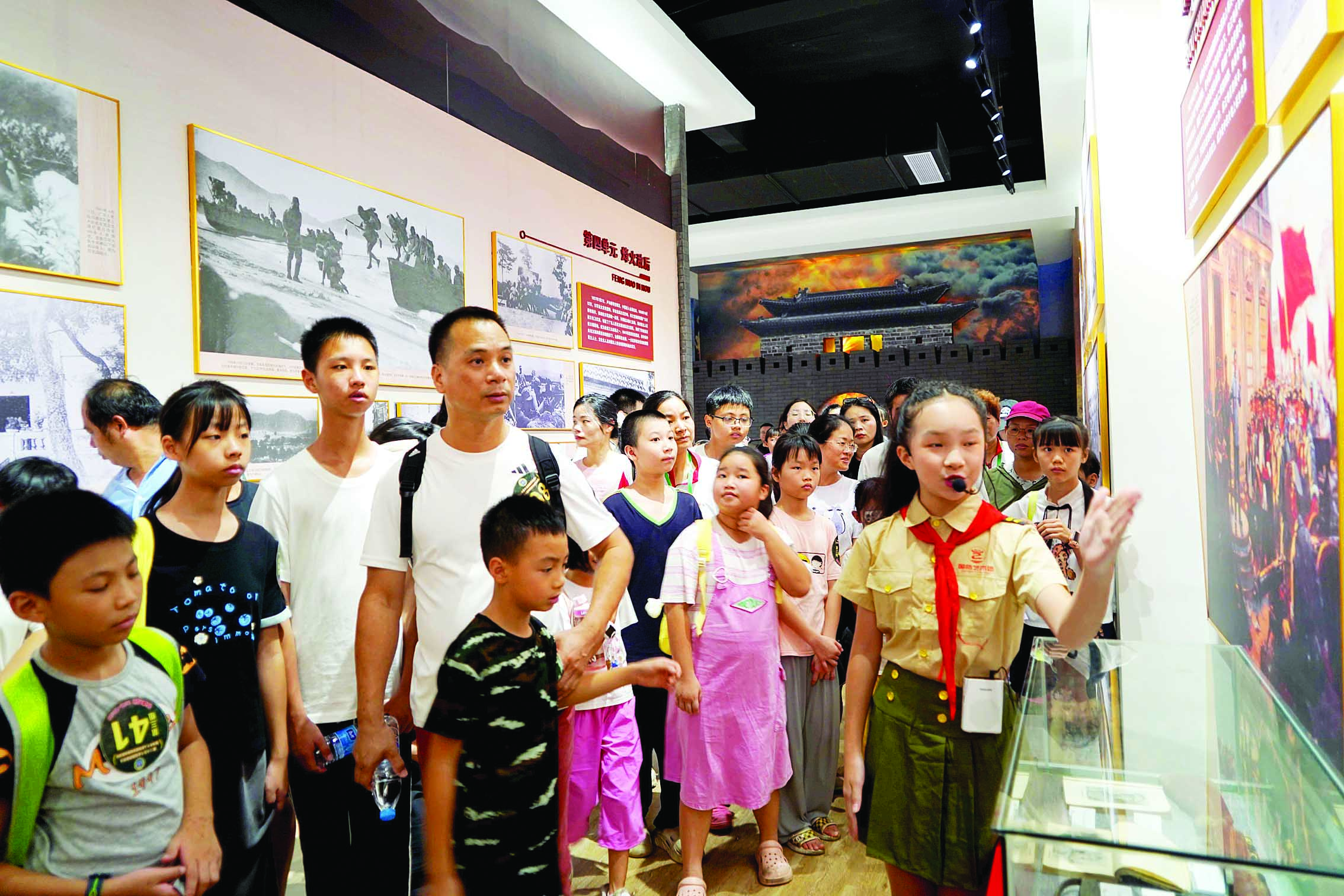 來自惠州市第十六小學的莊宓是一名國防教育“小小講解員”,她通過參與展覽廳內(nèi)容講解,學習到不少國防教育知識!拔伊私獾胶芏嘤⑿凼论E,這些英雄們都非常勇敢,他們用自己的身軀保衛(wèi)了國家安寧!鼻f宓認為,這次活動讓她深受啟發(fā),她希望長大后也可以像這些英雄們一樣,為祖國的繁榮昌盛貢獻一份自己的力量。
