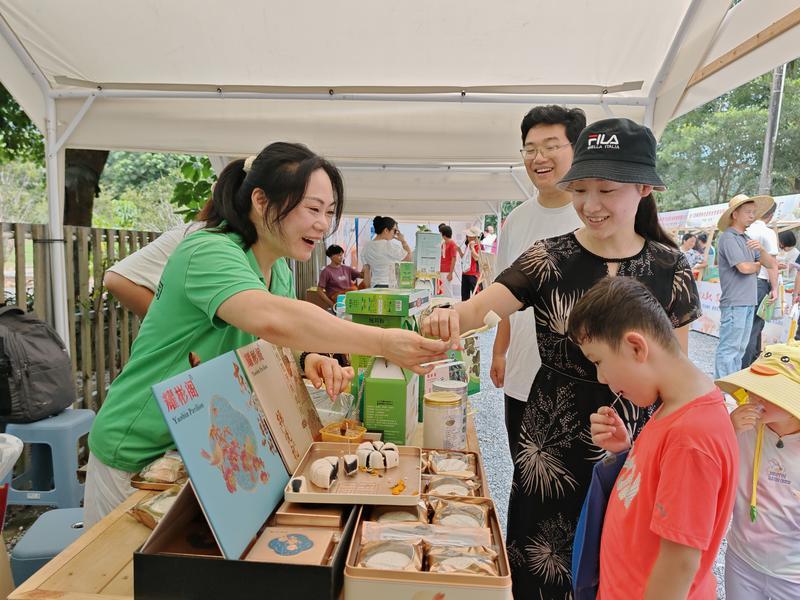 現(xiàn)場(chǎng)農(nóng)特產(chǎn)品市集更是人氣爆棚。來(lái)自各縣區(qū)近50家企業(yè)的“土寶貝”在此集結(jié),形成一條“可品可購(gòu)可互動(dòng)”的豐收長(zhǎng)廊——龍門(mén)蜂蜜晶瑩剔透,惠城山茶油芳香四溢,惠陽(yáng)荔枝酒酒香醇厚,惠東巖茶沁人心脾,博羅涼果酸甜開(kāi)胃,仲愷百香果清甜多汁,每一款產(chǎn)品都承載著惠州的鄉(xiāng)土風(fēng)味。展位前,農(nóng)戶與企業(yè)負(fù)責(zé)人忙碌的身影格外耀眼,鮮活的助農(nóng)故事在市集間流轉(zhuǎn)。
