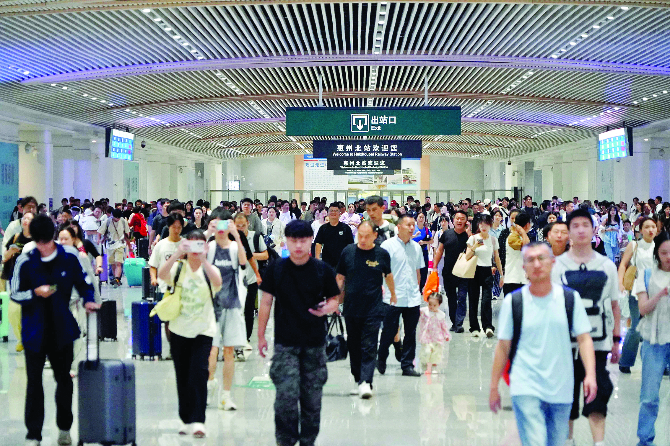 惠州北站迎來旅客來惠小高峰,眾多旅客來惠游玩;葜萑請笥浾呃钏蓹 攝