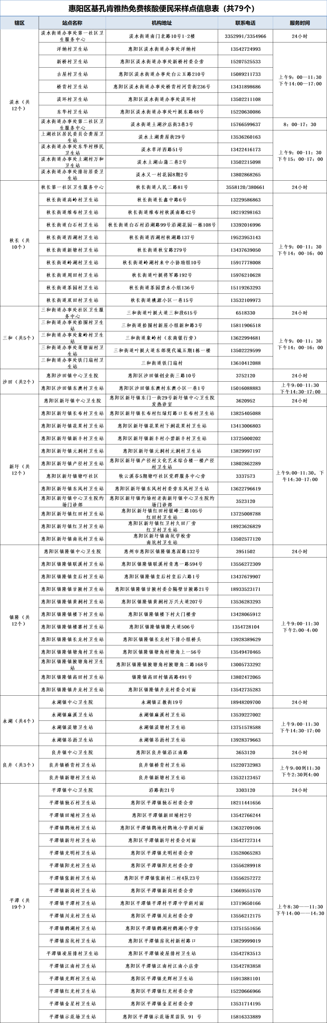 惠陽區(qū)基孔肯雅熱核酸便民采樣信息表