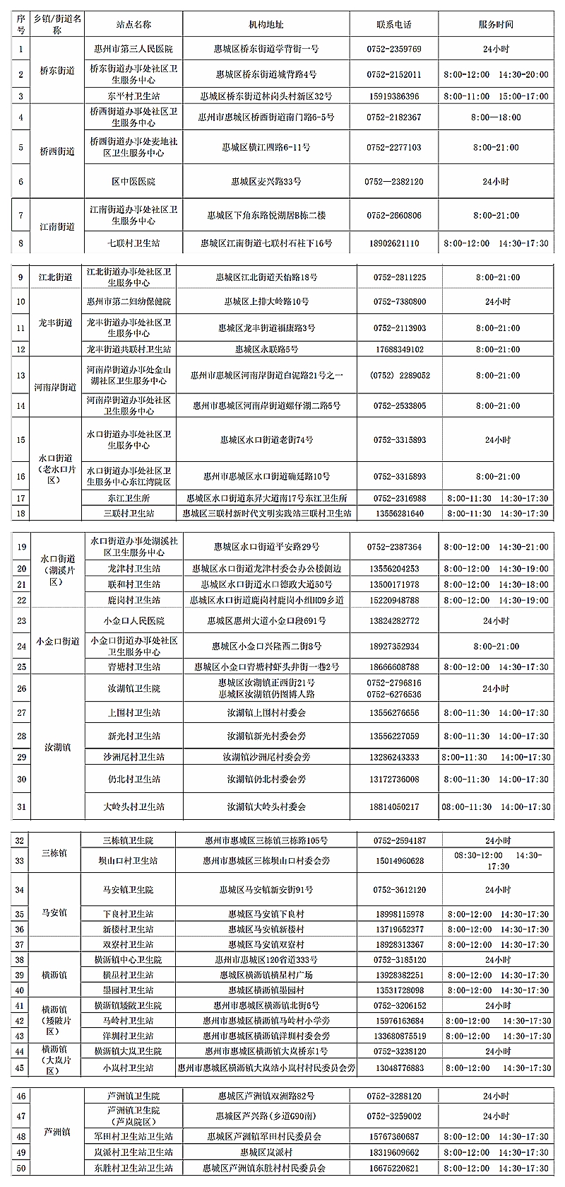 來源:惠城區(qū)衛(wèi)生健康局、惠陽區(qū)衛(wèi)生健康局、惠州大亞灣開發(fā)區(qū)管委會教育文化衛(wèi)生健康局、惠東縣衛(wèi)生健康局