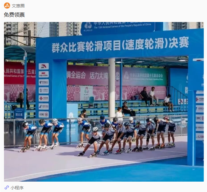 中華人民共和國第十五屆運動會群眾比賽輪滑項目決賽(自由式、速度輪滑),將于10月18日-19日分別在惠州市體育運動學校的速度輪滑場和籃球館舉行。