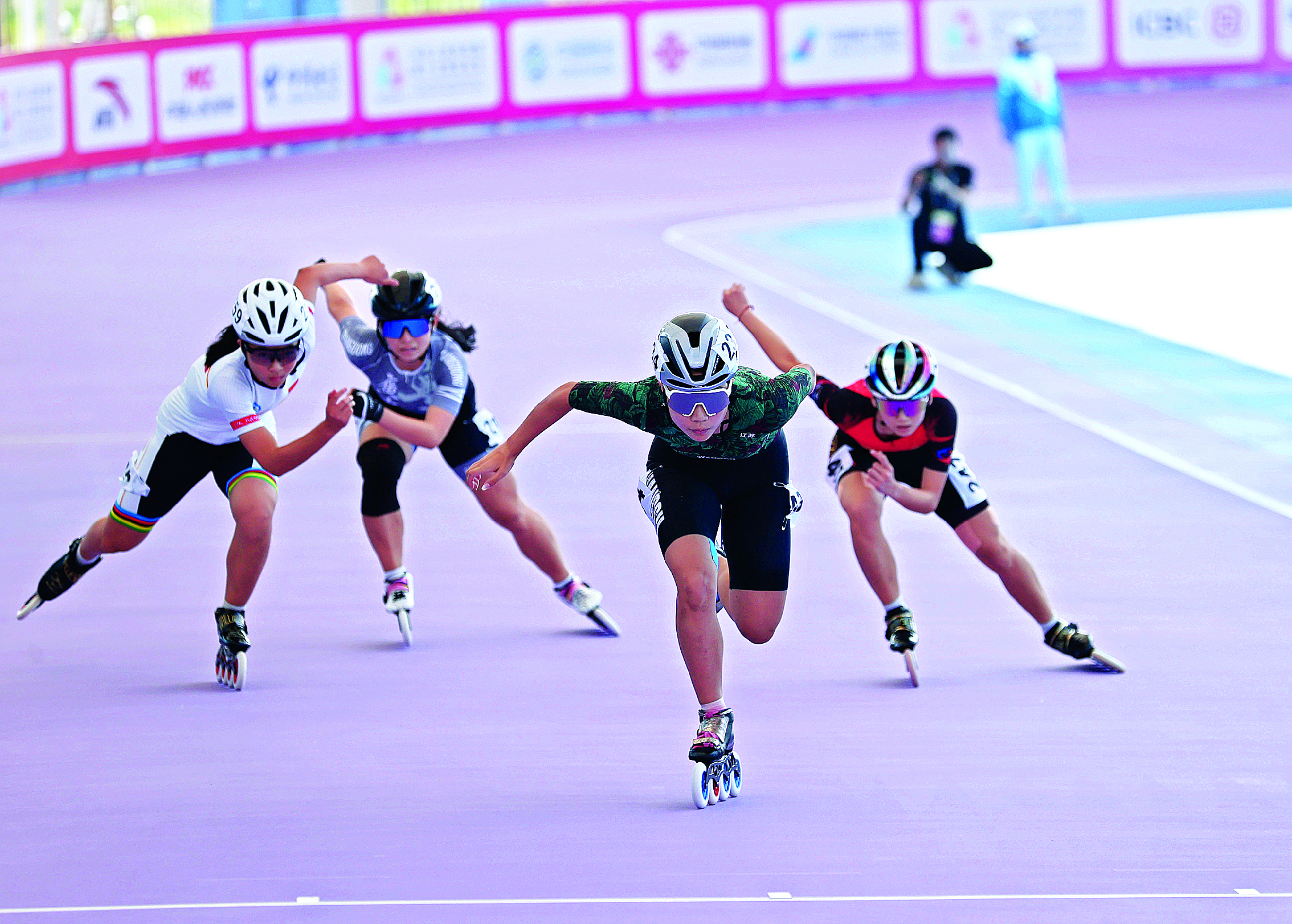 在速度輪滑女子團(tuán)體積分賽10000米積分淘汰賽中,江蘇隊(duì)包攬了男子組與女子組的第一名。江蘇隊(duì)運(yùn)動(dòng)員李雨霏以總分27分的優(yōu)異成績(jī)奪得女子組第一名。賽后李雨霏對(duì)現(xiàn)場(chǎng)的賽道條件給予了高度評(píng)價(jià):“這是我第三次來惠州,這次的賽道很新,也很干凈,正是這樣的優(yōu)質(zhì)場(chǎng)地,讓我能專注于比賽,發(fā)揮出自己的水平!