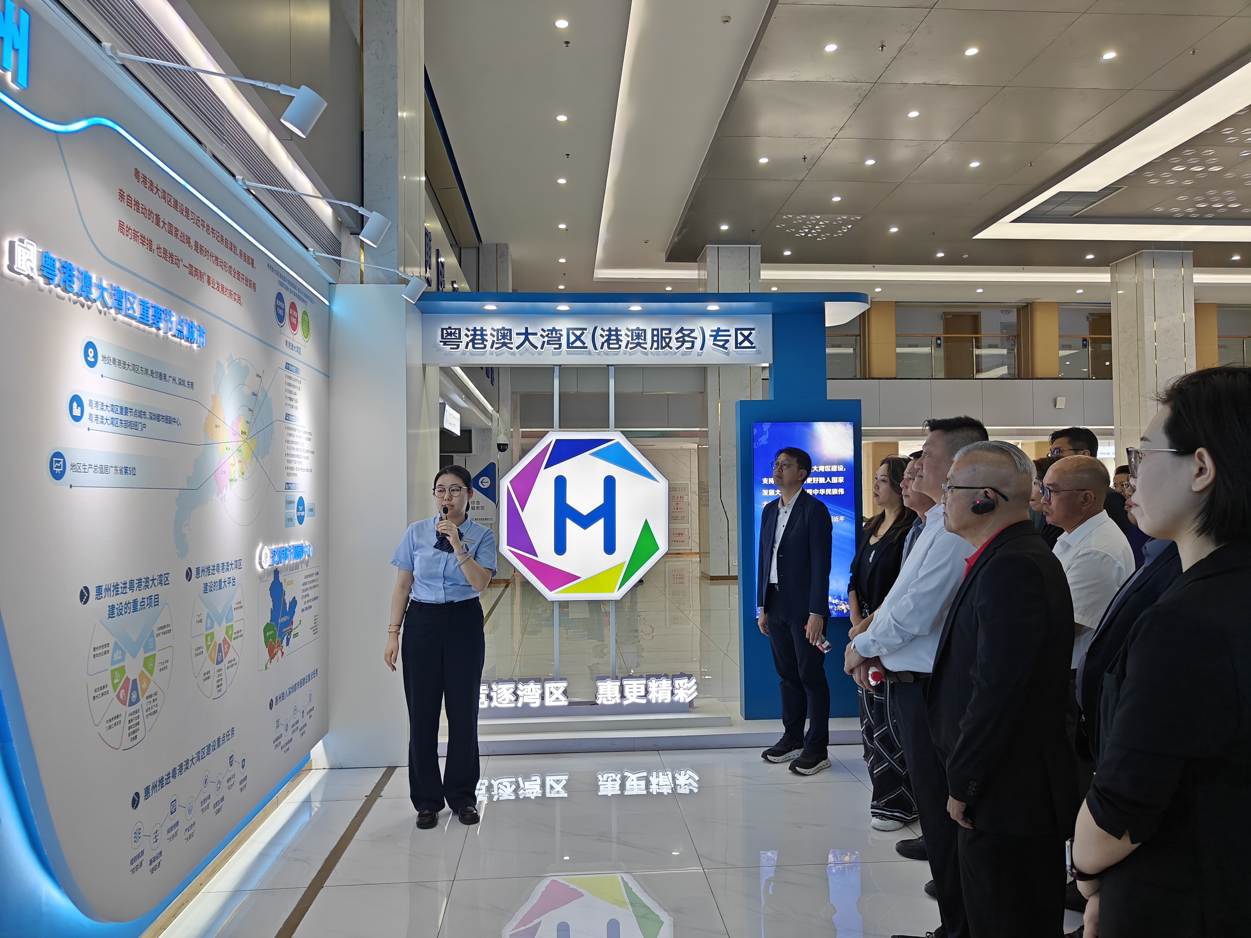 嘉賓參觀惠州粵港澳大灣區(qū)(港澳服務(wù))專(zhuān)區(qū)。