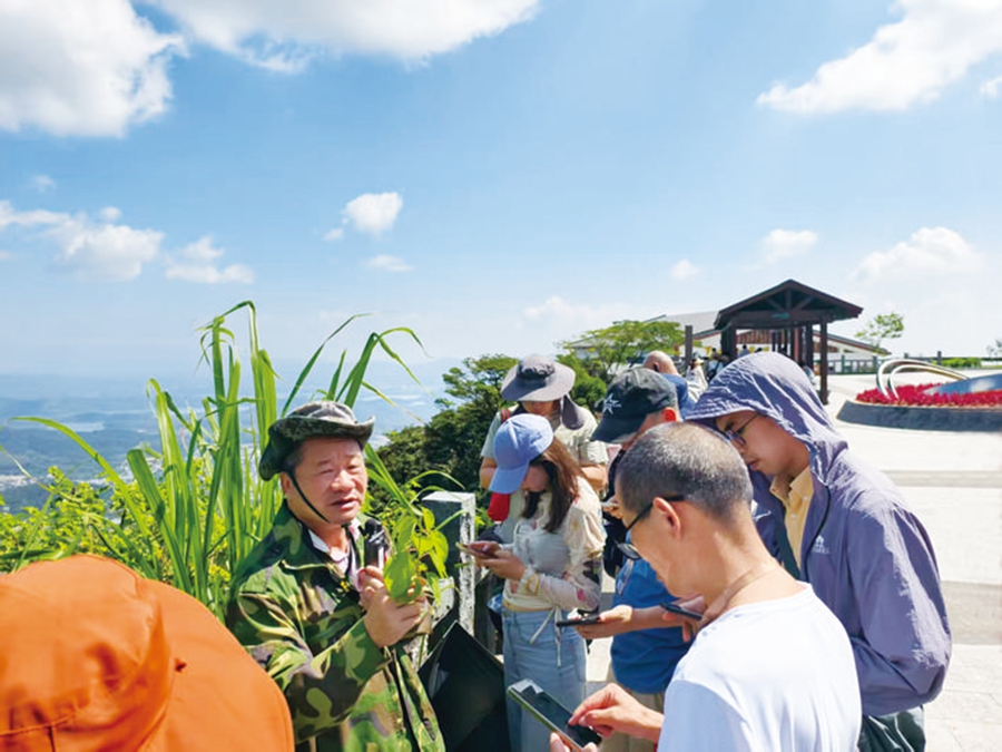 “這株是雞蛋花,是五花茶原料之一,作為外來物種傳入不足500年;那株是鐵冬青,公樹有花無果,母樹花果皆有,全身都是寶……”循著周天來的指引,導(dǎo)游們穿梭在羅浮山的綠意之中,開啟了一堂生動的“行走的本草課”。課堂上,周天來從植物形態(tài)辨識入手,深入淺出地講解各類藥材的四氣五味、炮制方法與藥用價值,更穿插著羅浮山“洞天藥市”的歷史傳說與民間用藥故事。導(dǎo)游們時而俯身觀察,時而認(rèn)真記錄,在觸摸草木、聆聽講解的過程中,切實感受到中醫(yī)藥文化的博大精深。