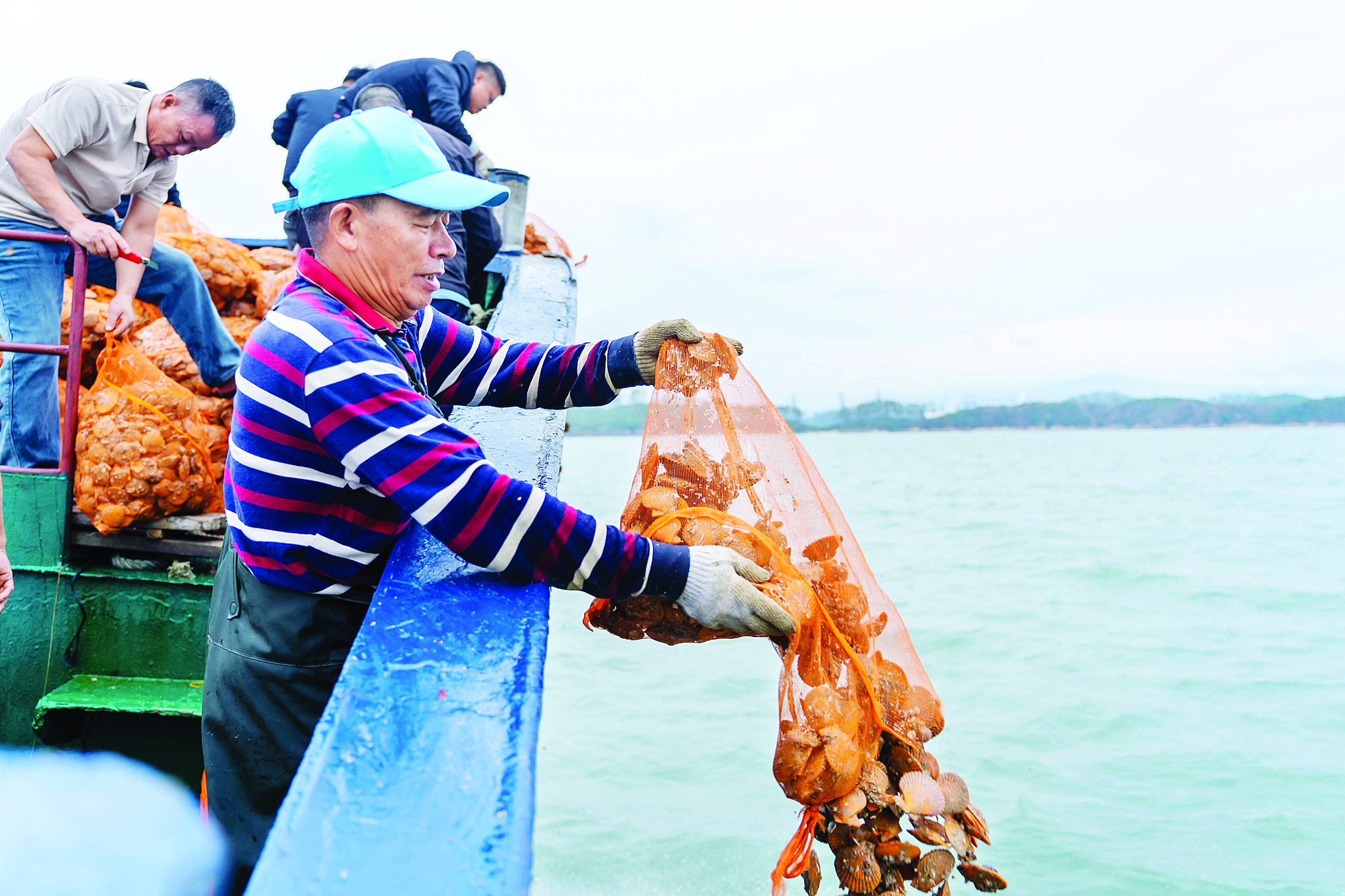 大量扇貝投放入海;葜萑請笥浾邚堄铉 通訊員吳霖輝 攝