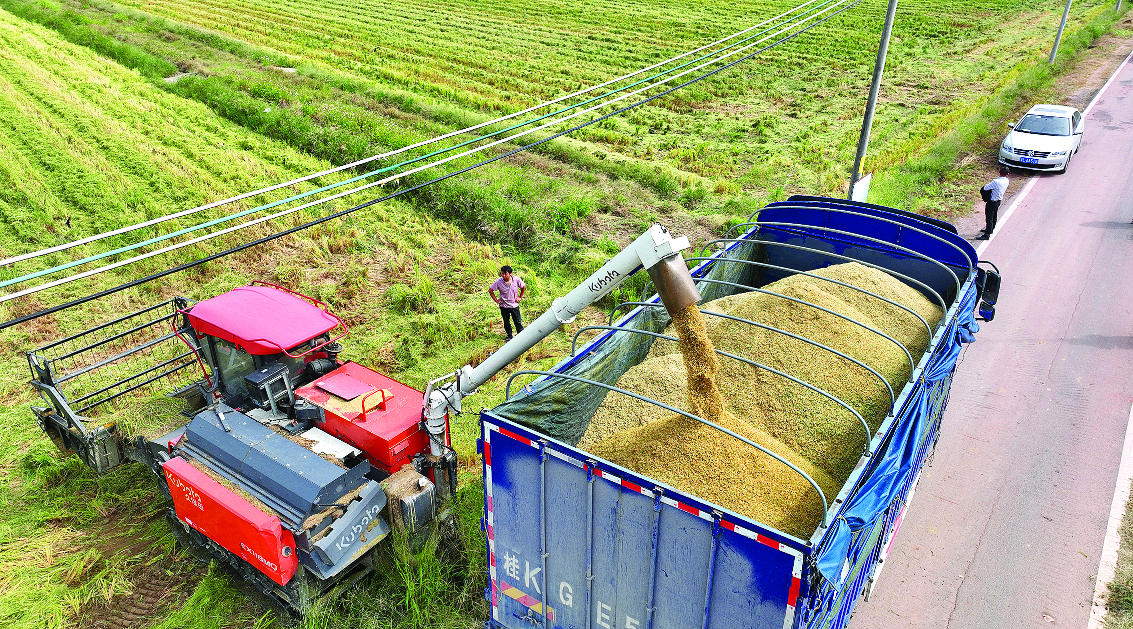 微風(fēng)中,稻香彌漫,千畝稻田陸續(xù)顆粒歸倉!耙惠呑幼龊梅N糧這件事,守住家鄉(xiāng)的田、端穩(wěn)百姓的碗,持續(xù)帶動更多周邊村民就業(yè)增收,共同奔向富裕之路!睆埦链嬲Z氣堅定。