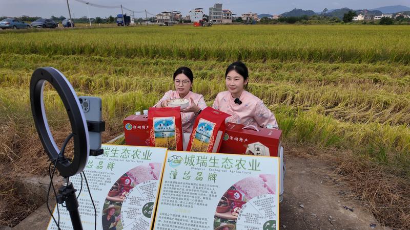 潼湖鎮(zhèn)駐鎮(zhèn)幫鎮(zhèn)扶村工作隊則成了產(chǎn)業(yè)發(fā)展的“助推器”!拔覀兗纫獛头N得好,更要幫賣得好!变(zhèn)黨委副書記、駐鎮(zhèn)幫鎮(zhèn)扶村工作隊隊長何機銳說道。在工作隊牽線下,城瑞農(nóng)業(yè)注冊“潼芯”品牌,設(shè)計突出生態(tài)、健康、綠色理念;針對銷售難題,工作隊不僅協(xié)調(diào)單位食堂采購、對接線上平臺,還聯(lián)合惠州城市職業(yè)學(xué)院建起直播教學(xué)實踐基地,對種糧大戶進行直播帶貨培訓(xùn),開展“潼湖農(nóng)創(chuàng)·智繪鄉(xiāng)村”系列主題活動。張玖存說,通過直播帶貨,“潼芯”好米被更多人知曉,在惠州本地口碑漸起,香港地區(qū)的合作也在洽談推進中。