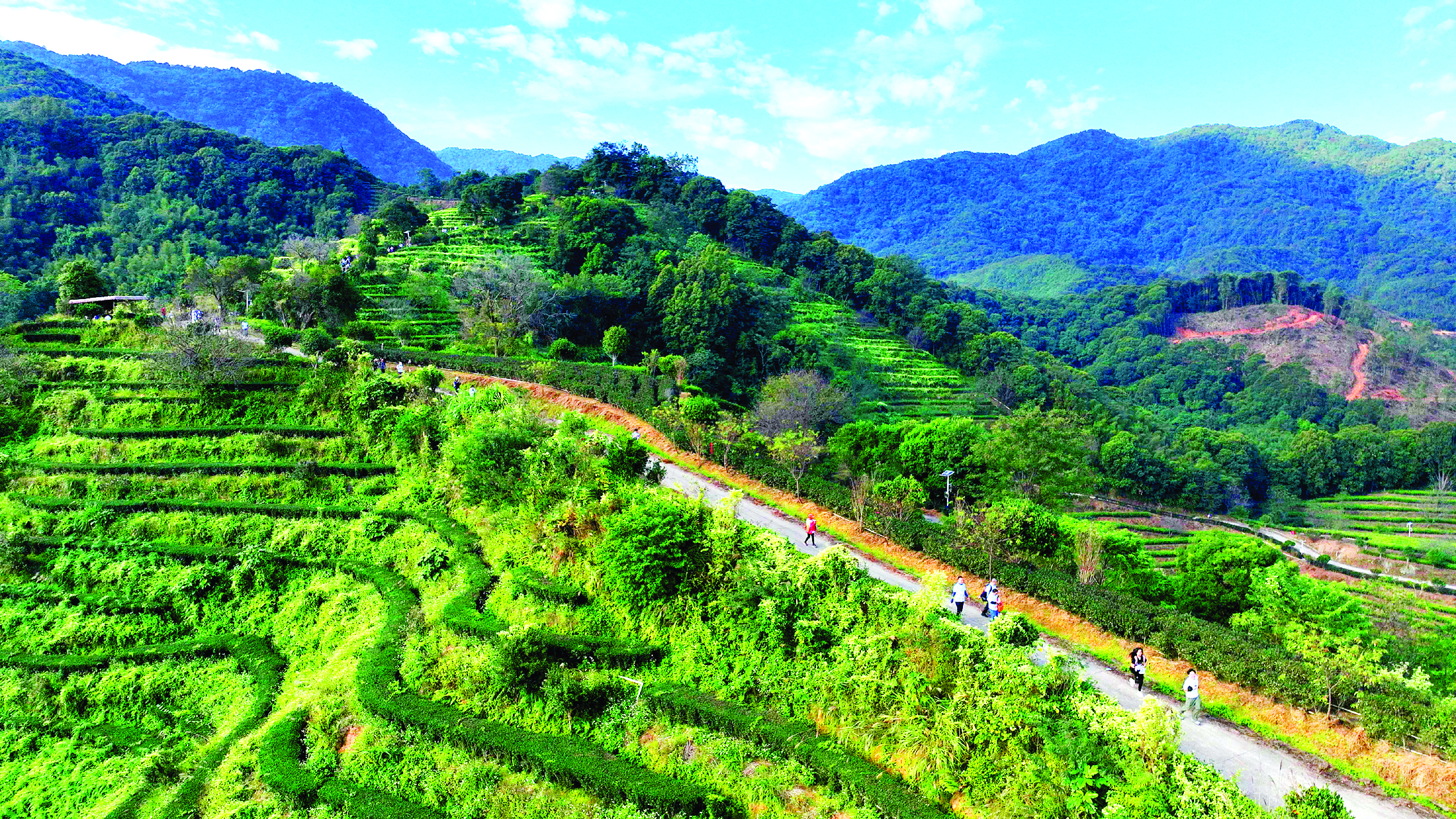 戶外運(yùn)動(dòng)愛(ài)好者、環(huán)保志愿者、企業(yè)團(tuán)隊(duì)與親子家庭在象頭山茶園徒步。惠州日?qǐng)?bào)記者李松權(quán) 攝