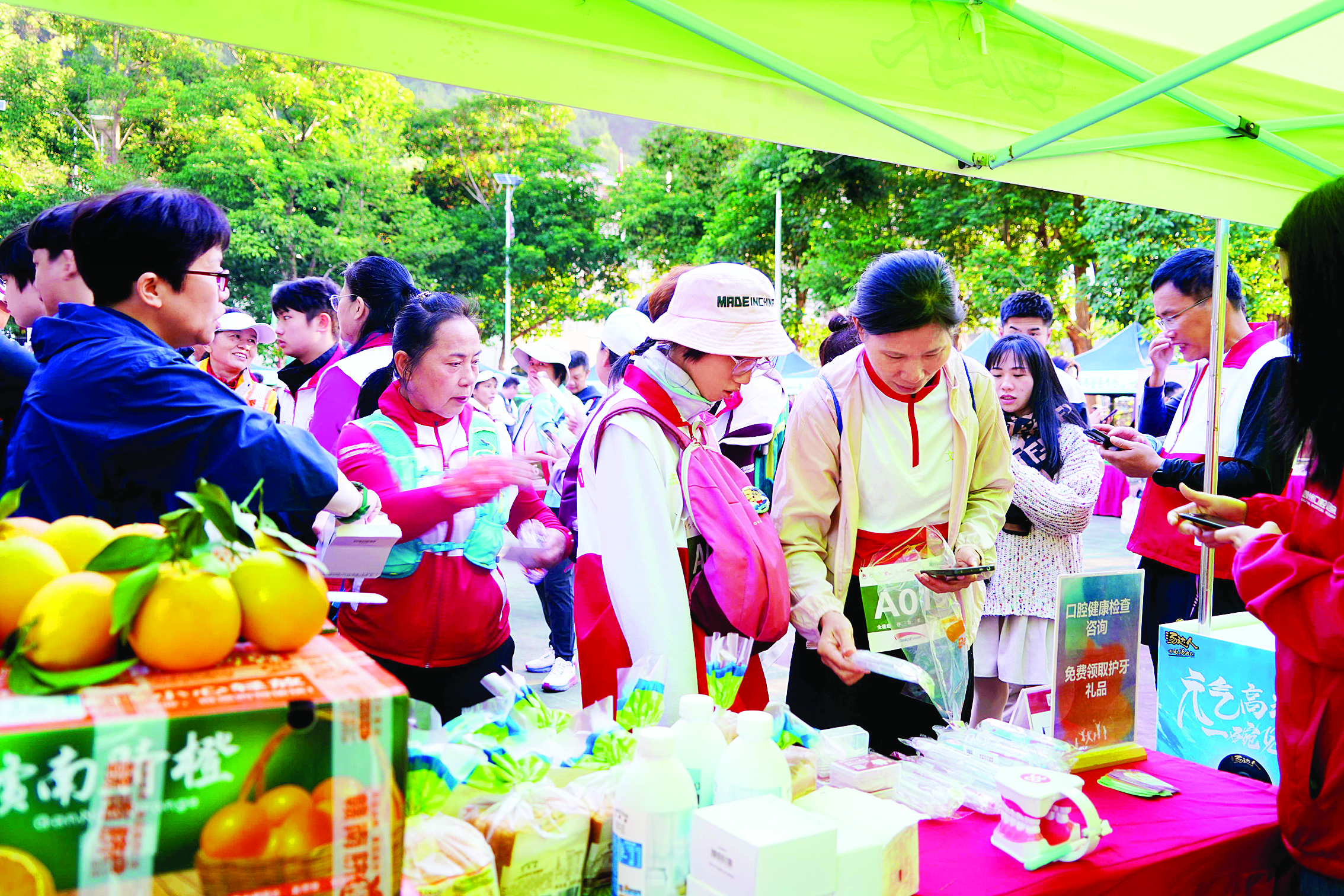 參加活動(dòng)的徒步愛(ài)好者在領(lǐng)取物資;葜萑?qǐng)?bào)記者李松權(quán) 攝