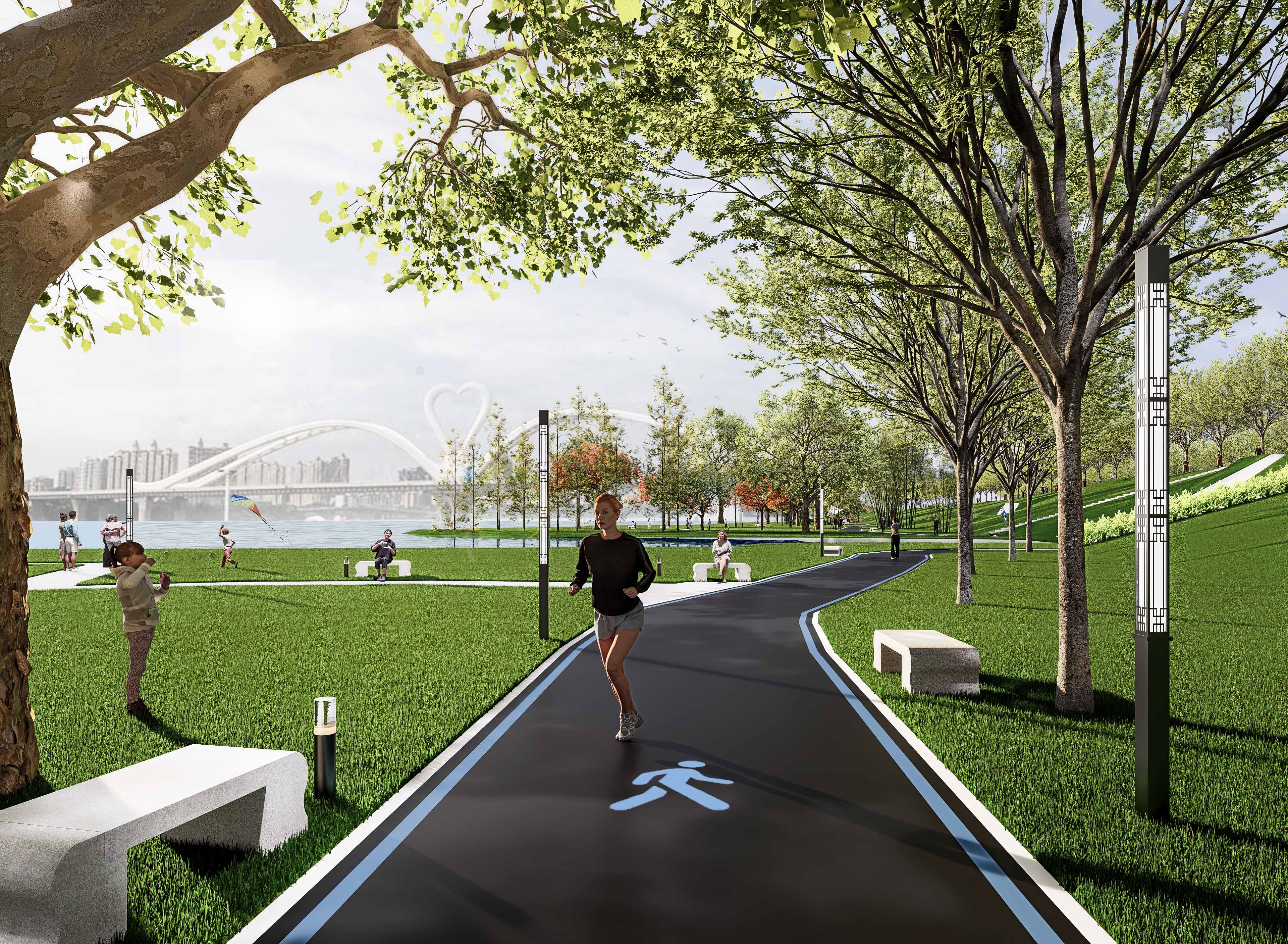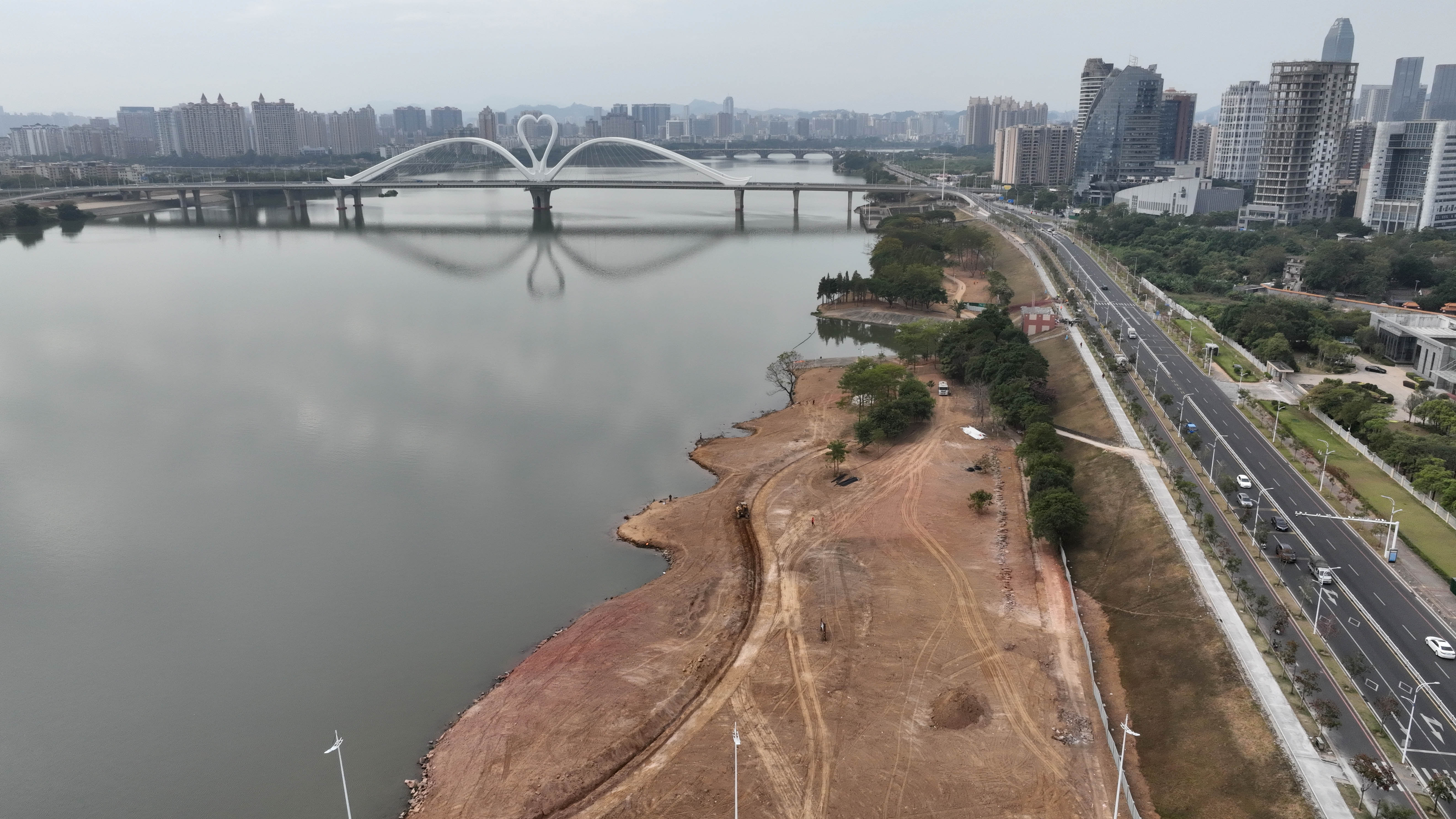 隆生大橋至鵝城大橋間的東江北岸,正在進(jìn)行沿江綠地建設(shè),打造成鵝城大橋的景觀帶。