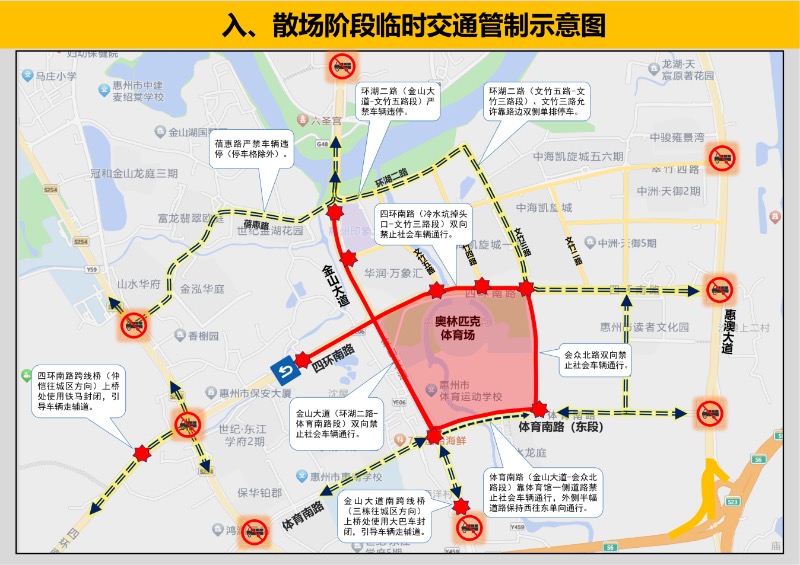 入、散場階段臨時(shí)交通管制示意圖。