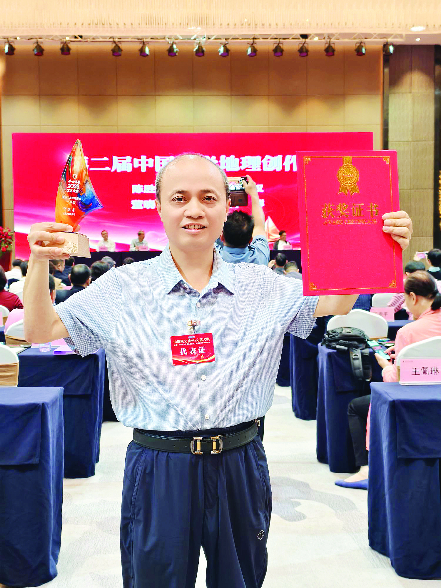 日前,“山海同文”2025文藝大典暨第十二屆今古傳奇全國文學藝術家創(chuàng)作交流研討會在海南省文昌市舉行,活動由湖北省文聯(lián)指導,湖北今古傳奇?zhèn)髅郊瘓F、文昌市文聯(lián)主辦,今古傳奇雜志社、湖北玉嬌瓏傳媒有限公司承辦。會上頒出系列獎項,惠州日報記者何運平(筆名“江雨”)創(chuàng)作的長篇報告文學《生死救撈——趙喜昌的義舉》(以下簡稱《生死救撈》)榮獲第十二屆優(yōu)秀圖書一等獎。