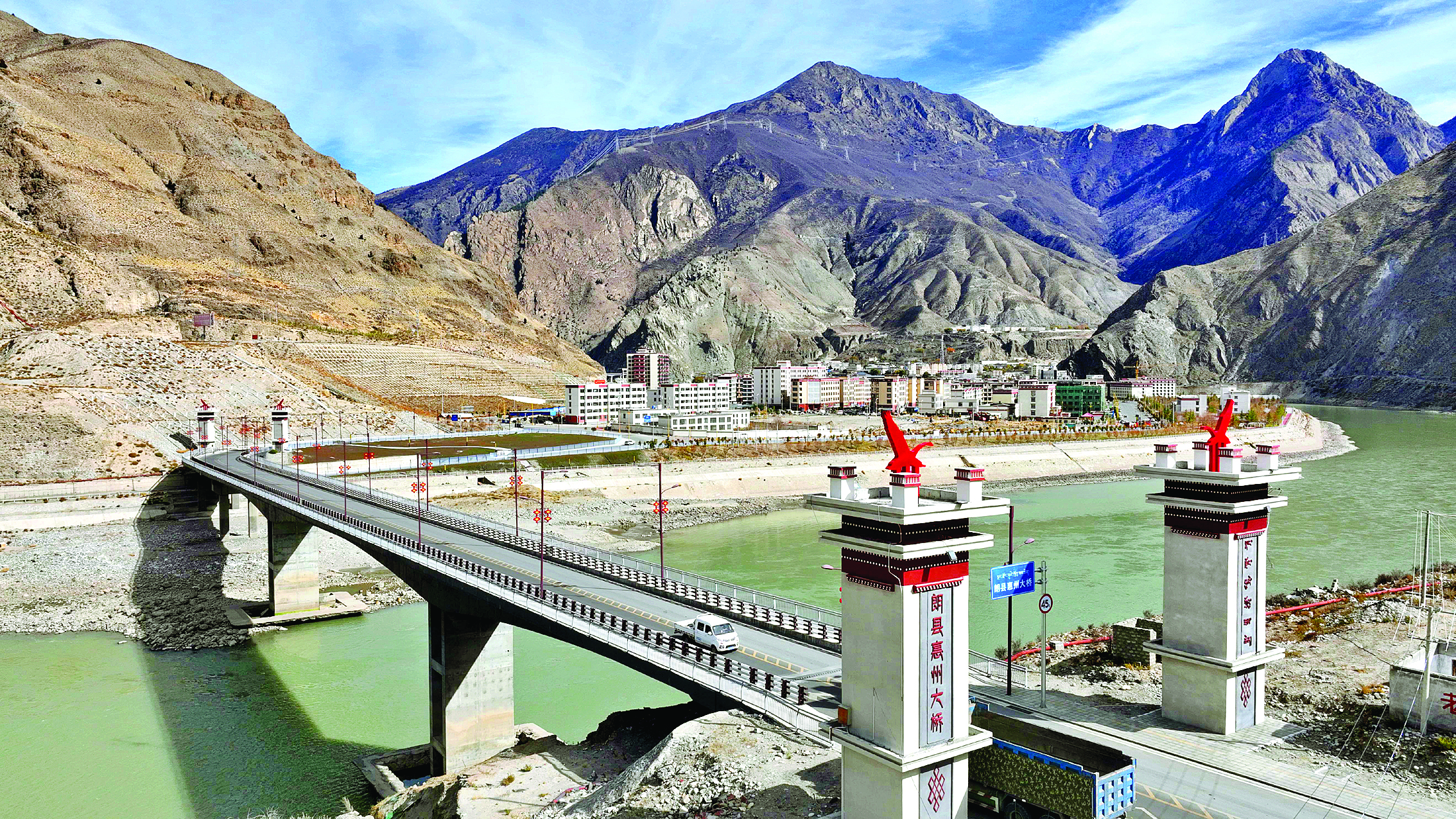 2025年的歲末陽光,灑在雅魯藏布江清澈的江面上,波光粼粼,晶瑩剔透,朗縣惠州大橋如一道飛虹,連接起縣城兩個新區(qū)。這不僅是一座橋梁,更是惠州和朗縣兩地情誼的生動見證。橋下奔流不息的雅江水,行進沉穩(wěn),堅定有力,既展現(xiàn)了朗縣的快速發(fā)展,也講述著惠朗同心的澎湃深情。