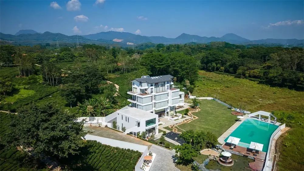 該民宿位于惠州市博羅縣高橋村中心園小組1號,背靠茶山,毗鄰廣東十大最美鄉(xiāng)村公路柏塘柏鄒公路及柏塘古欖園,田園與茶園風(fēng)情兼具。民宿占地6600平方米,獨門獨院,配套無邊泳池、私湯泡池、兒童游樂區(qū)、餐廳等設(shè)施,白色獨棟建筑獨立于山野間,屋后可采茶,窗前可品茶,頗具韻味。