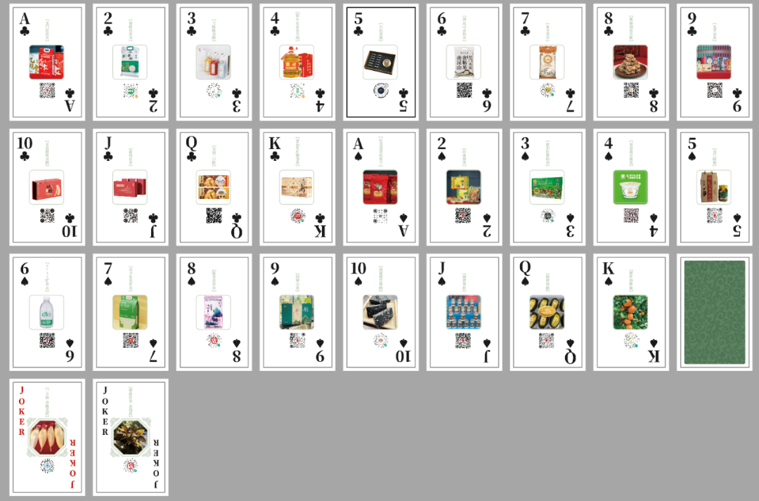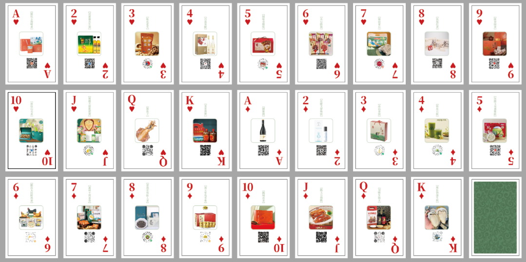 這副文創(chuàng)紙牌以惠州特色農產品為絕對主角,54張牌對應54種本土優(yōu)質農產,糧油干貨、生鮮水產、醇香茶飲、解饞零食等品類全覆蓋,每一張都是獨屬于惠州的農產品名片。紅桃間藏著咸香醇厚的矮陂梅菜,黑桃里盛著回甘悠長的羅浮山茶,梅花間躺著粒粒飽滿的南昆山大米,方塊中裹著各式地道惠州滋味,鮮活的農產圖景躍然牌面,視覺盛宴盡顯惠州農產品的豐富與鮮美,讓舌尖上的惠州觸手可及。