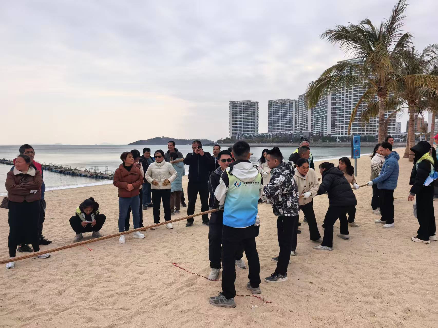 活動(dòng)以“趣味互動(dòng)、融合共樂”為核心,設(shè)置了拔河、兩人三足、呼啦圈傳送等多個(gè)適合視障人士參與的趣味項(xiàng)目。在拔河比賽中,視障人士與志愿者默契配合,喊著整齊的口號(hào)發(fā)力;兩人三足環(huán)節(jié)里,大家手挽手、步調(diào)整齊,一步步邁向終點(diǎn);呼啦圈傳送時(shí),現(xiàn)場(chǎng)笑聲不斷,每一次順利傳遞都引來陣陣掌聲。這些項(xiàng)目不僅讓視障人士在沙灘上體驗(yàn)到運(yùn)動(dòng)的快樂,也打破了溝通壁壘,讓志愿者與視障人士在互動(dòng)中加深了解。