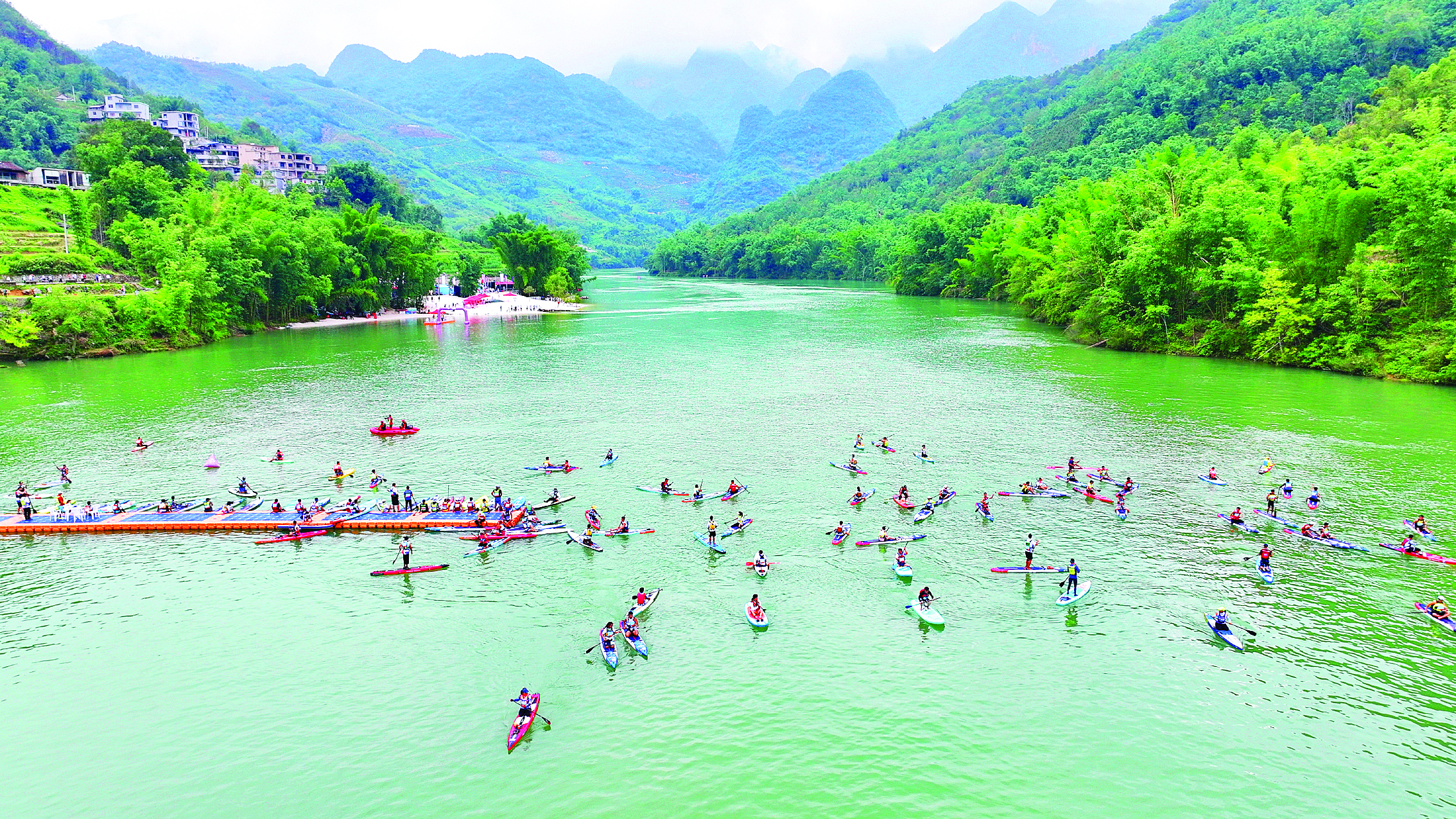 壩盤(pán)村坐擁萬(wàn)峰湖的秀美山水,卻因交通不便、缺乏宣傳,守著綠水青山難變現(xiàn)。工作組與當(dāng)?shù)攸h委、政府經(jīng)過(guò)深入調(diào)研,決定以“媒體+東西部協(xié)作”破題,瞄準(zhǔn)戶(hù)外運(yùn)動(dòng)風(fēng)口,集中力量打造槳板運(yùn)動(dòng)特色村。