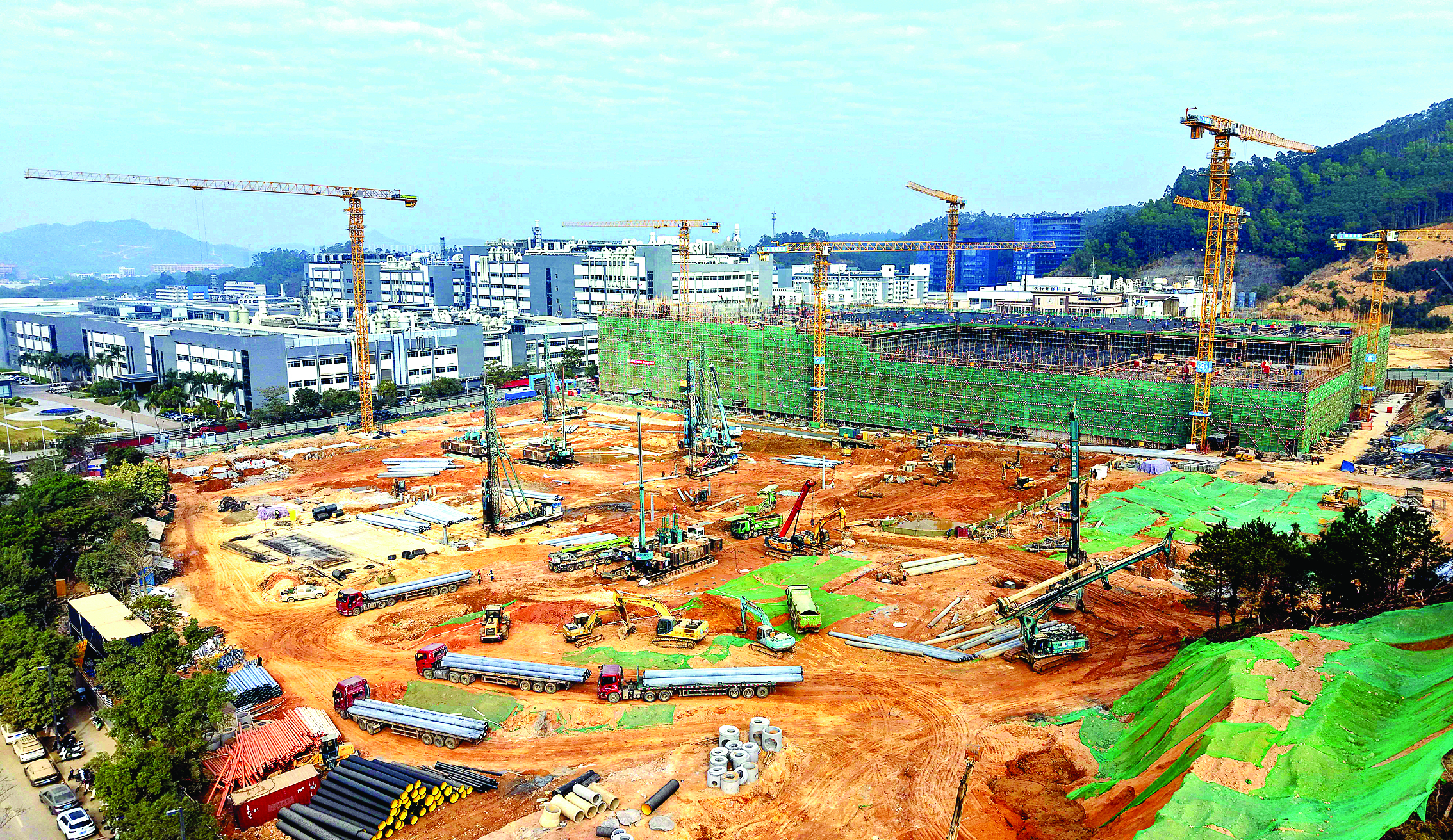 來到惠陽區(qū)淡水的勝宏科技產(chǎn)業(yè)園,只見幾棟新廠房正火熱建設(shè)中。當(dāng)前重點(diǎn)建設(shè)的是廠房十,總建筑面積15.7萬平方米,8個(gè)分區(qū)。項(xiàng)目于2025年10月底啟動(dòng)建設(shè),“我們希望春節(jié)前廠房十1區(qū)、2區(qū)可以率先封頂,進(jìn)入3月份后,其他分區(qū)陸續(xù)封頂!表(xiàng)目承建方一位現(xiàn)場負(fù)責(zé)人介紹,趁著當(dāng)前施工條件良好的有利時(shí)機(jī),工地上各類機(jī)械火力全開,正以七八天建一層的速度加快推進(jìn)。