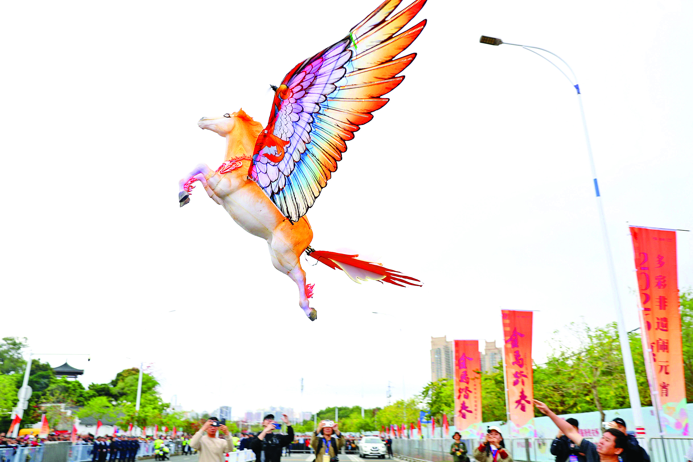 3月1日上午10時(shí),一匹“飛馬”靈動(dòng)升空,拉開(kāi)巡游序幕。