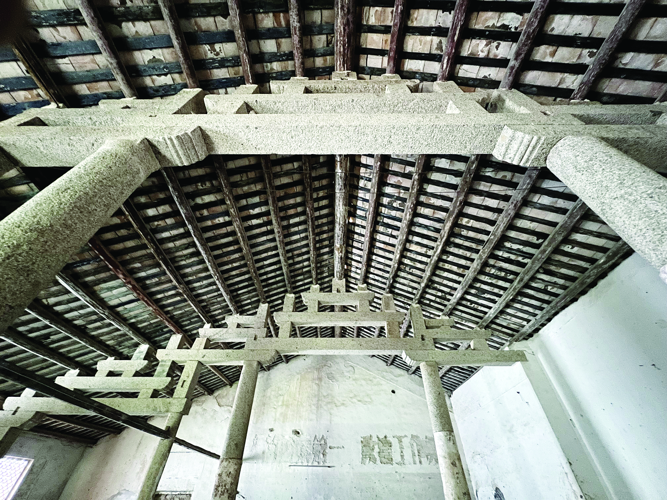 龍泉寺始建于明成化年間(1465~1487),其建筑形制堪稱嶺南佛寺的活化石。寺廟占地2600平方米,原為三進院落布局,坐東北朝西南,依山勢而建,形成層層遞進的壯觀景象,F(xiàn)存的后殿,采用磚瓦單層結(jié)構(gòu),硬山屋頂,臺梁式與穿斗式混合花崗巖條石架構(gòu)。尤為珍貴的是覆盆式柱礎(chǔ)——這種盛行于唐宋的構(gòu)件在明代已屬罕見,記錄著中原建筑技藝南傳的歷史軌跡。站在殿內(nèi)仰望,但見石木梁枋交錯如棋盤,不用一釘而百年穩(wěn)固,正是《營造法式》中的生動體現(xiàn)。