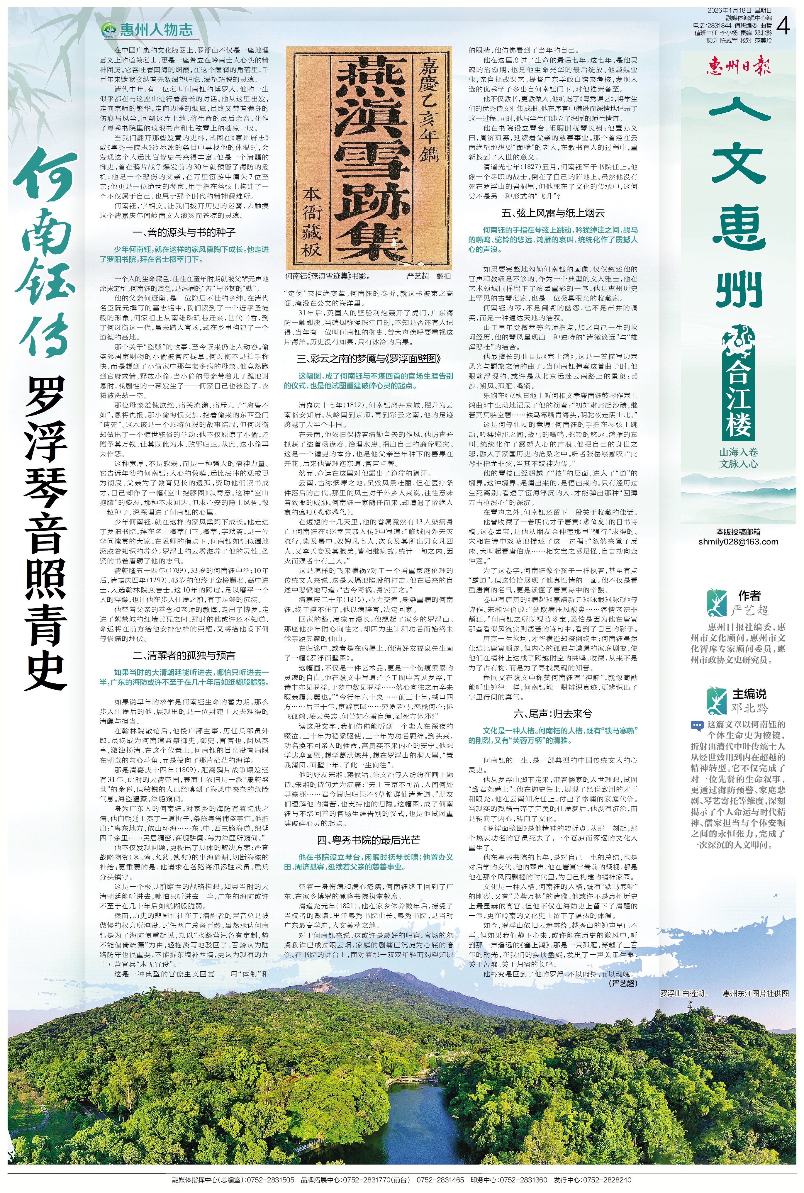 文化是一種人格。何南鈺的人格,既有“鐵馬寒嘶”的剛烈,又有“芙蓉萬(wàn)柄”的清雅。他或許不是惠州歷史上最顯赫的高官,但他不僅在海防史上留下了清醒的一筆,更在嶺南的文化史上留下了溫?zé)岬捏w溫。