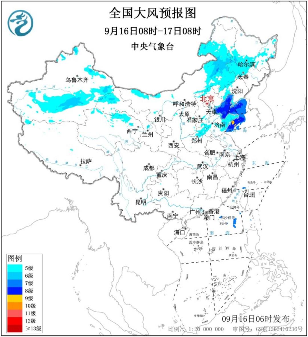 中央氣象臺16日6時發(fā)布藍(lán)色大風(fēng)預(yù)警,預(yù)計16日8時—17日8時,新疆東部及南疆盆地、甘肅河西、青海北部、內(nèi)蒙古西部和中東部、東北地區(qū)西部、山東半島等地部分地區(qū)有5級、陣風(fēng)7級的大風(fēng)。