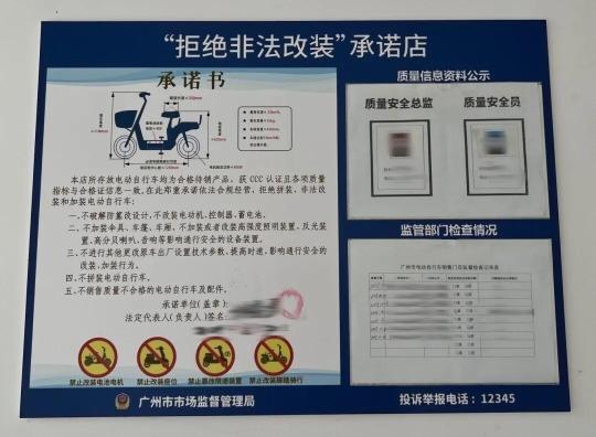 在檢查電動自行車銷售門店經(jīng)營情況方面,廣州市場監(jiān)管部門查資質(zhì)公示,核驗門店營業(yè)執(zhí)照是否有效,檢查是否醒目公示“拒絕非法改裝”承諾等;查產(chǎn)品合規(guī),核對車輛CCC認(rèn)證標(biāo)志及產(chǎn)品合格證有效性,攜帶臺秤、尺具現(xiàn)場核查整車重量、尺寸,比對整車編碼、電動機、蓄電池、控制器、充電器等關(guān)鍵信息與合格證信息一致性;查非法改裝,對照合格證簡圖核查車輛外觀,排查破解限速裝置、改裝電動機、控制器、蓄電池等違規(guī)行為;查規(guī)范管理,督促門店落實進貨查驗、索證索票、臺賬管理,規(guī)范“一車一池一充”陳列要求。