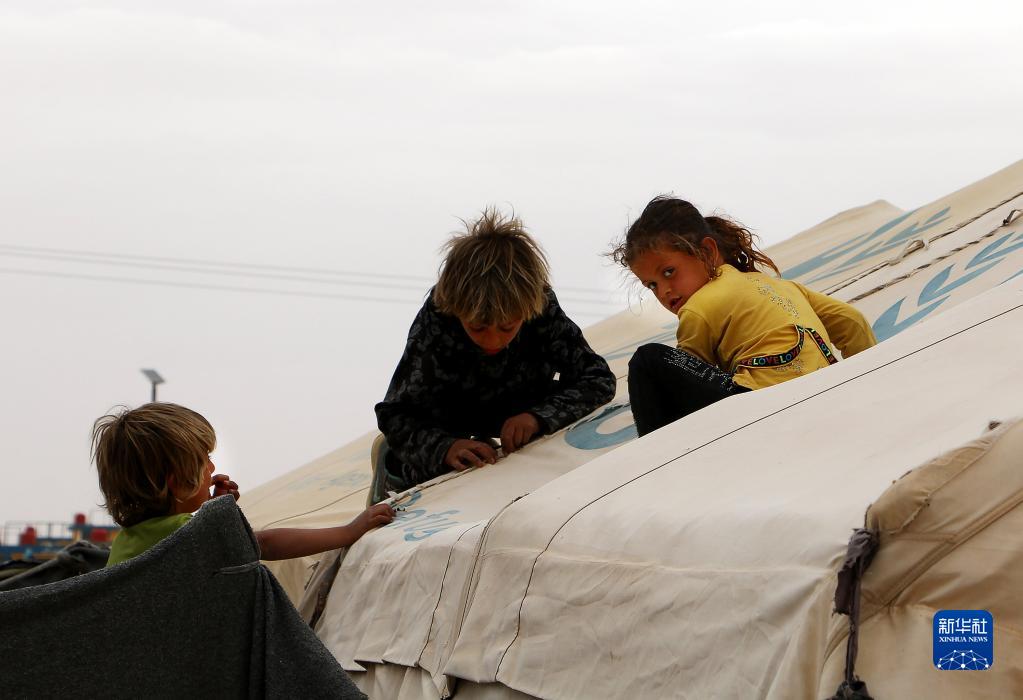 這是5月28日在敘利亞哈塞克省拍攝的霍爾難民營內(nèi)的孩子們。