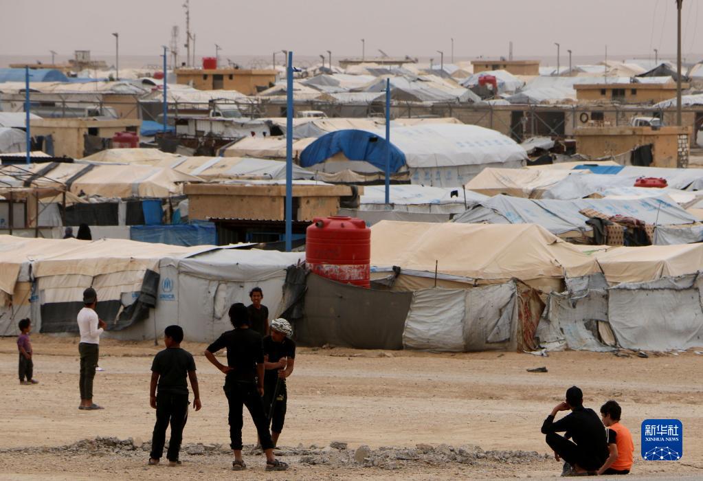 這是5月28日在敘利亞哈塞克省拍攝的霍爾難民營內(nèi)的人們。