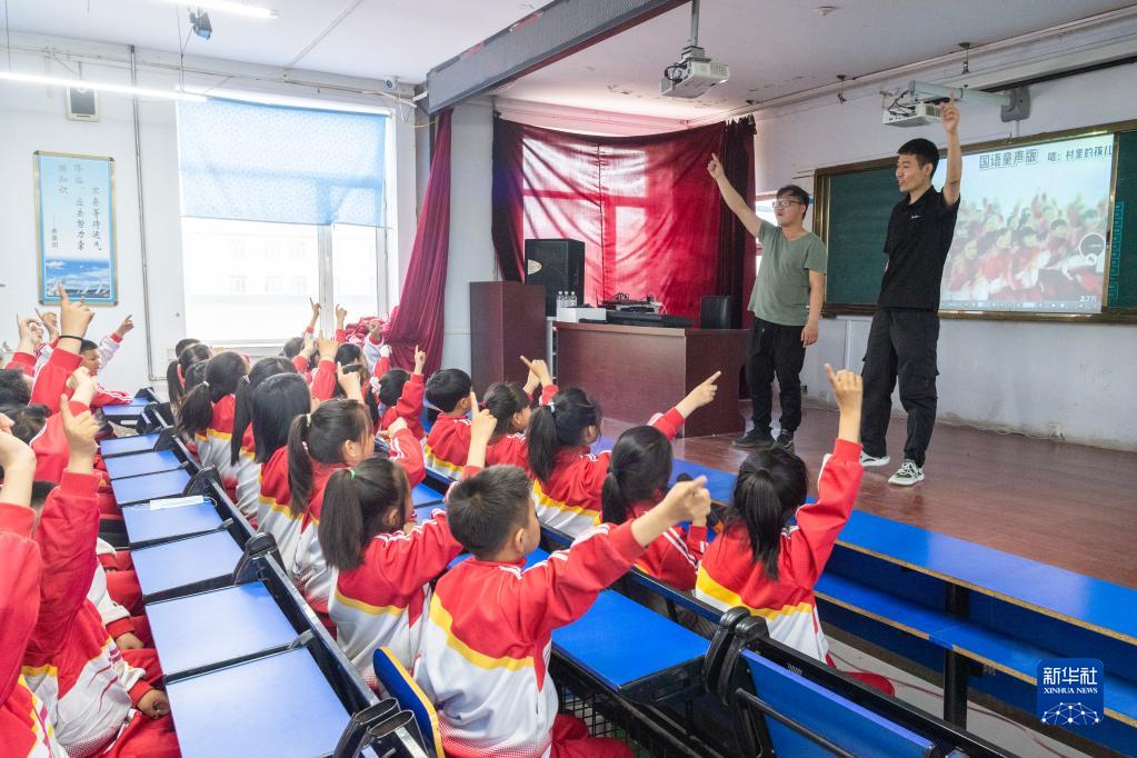 5月30日,在安達(dá)市任民鎮(zhèn)中心小學(xué),音樂(lè)班的孩子在學(xué)習(xí)演唱技巧。