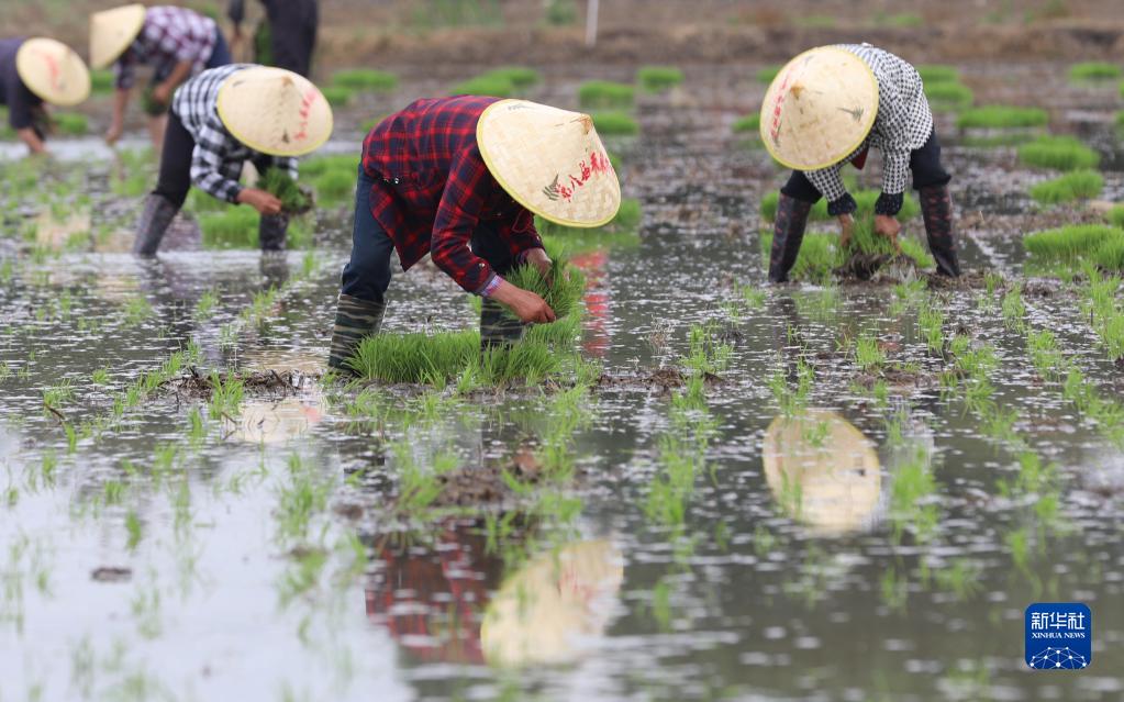 當日,江蘇省淮安市洪澤區(qū)岔河鎮(zhèn)舉行第八屆禾采插秧節(jié)活動,村民和游客在稻田里體驗農耕樂趣,感受田園生活。