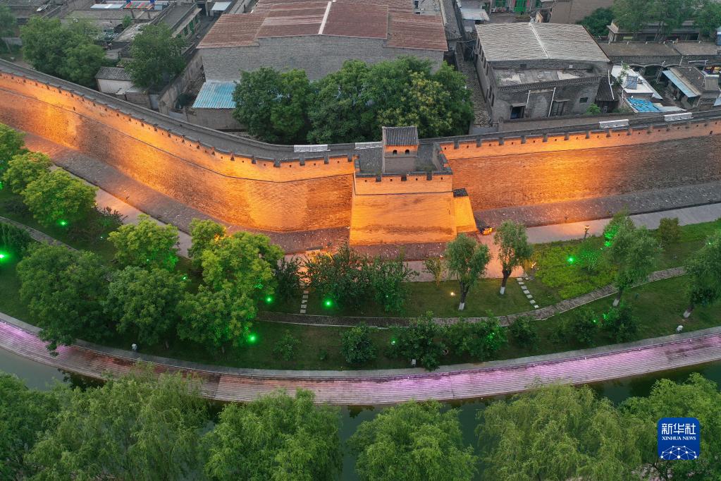 平遙古城一角(5月30日攝,無人機照片)。