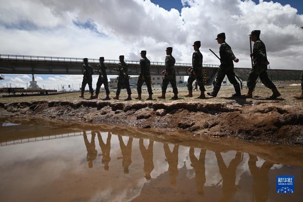 當日,在青海省海西蒙古族藏族自治州格爾木市唐古拉山鎮(zhèn),武警青海總隊海西支隊官兵在長江源沱沱河開展“守衛(wèi)長江源”主題黨日活動。