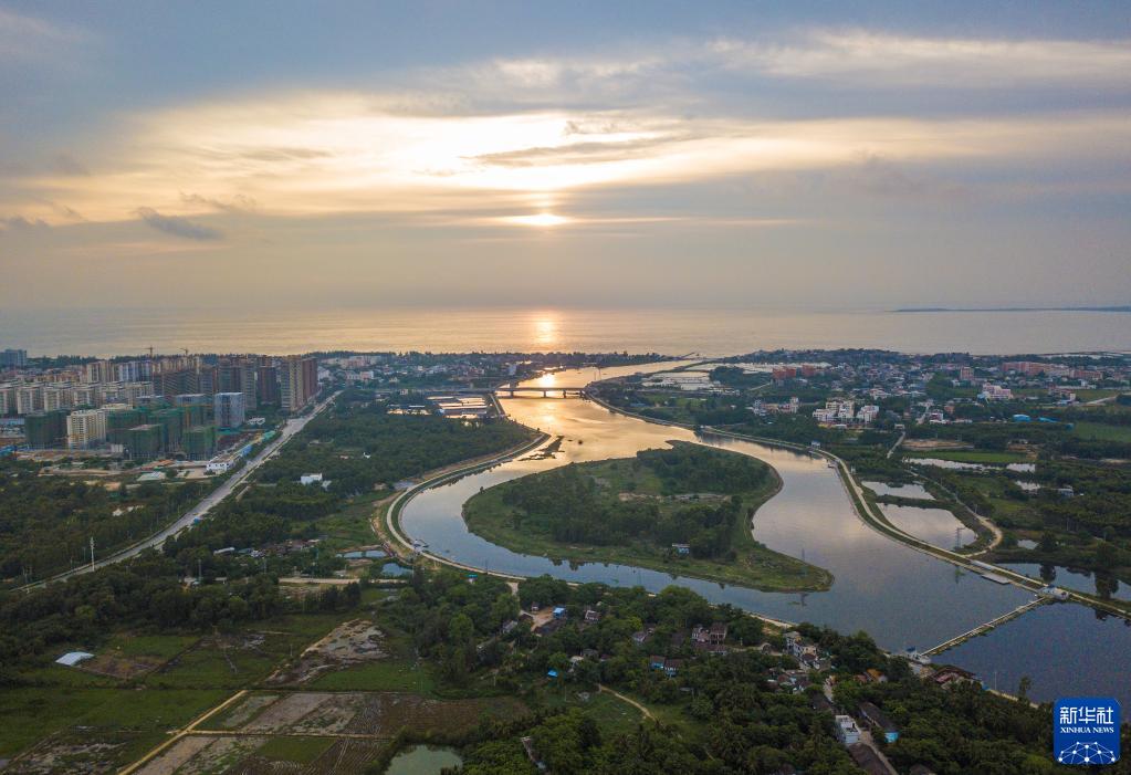 6月9日在海南省東方市拍攝的北黎河景色(無人機(jī)照片)。