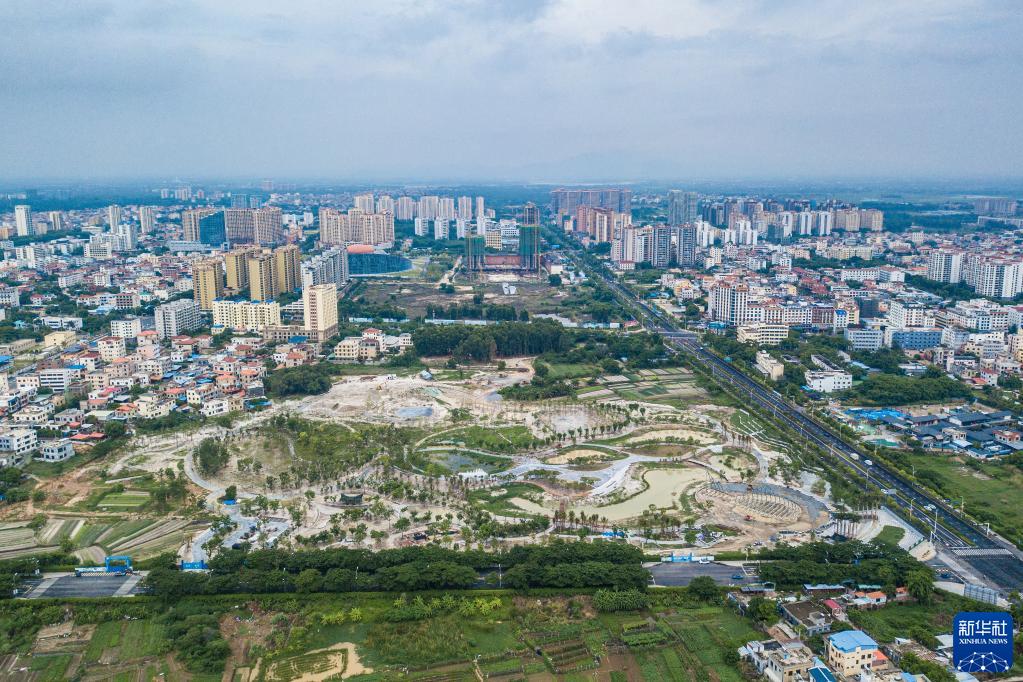 6月10日在海南省東方市拍攝的建設(shè)中的福民湖(福民公園)(無人機(jī)照片)。