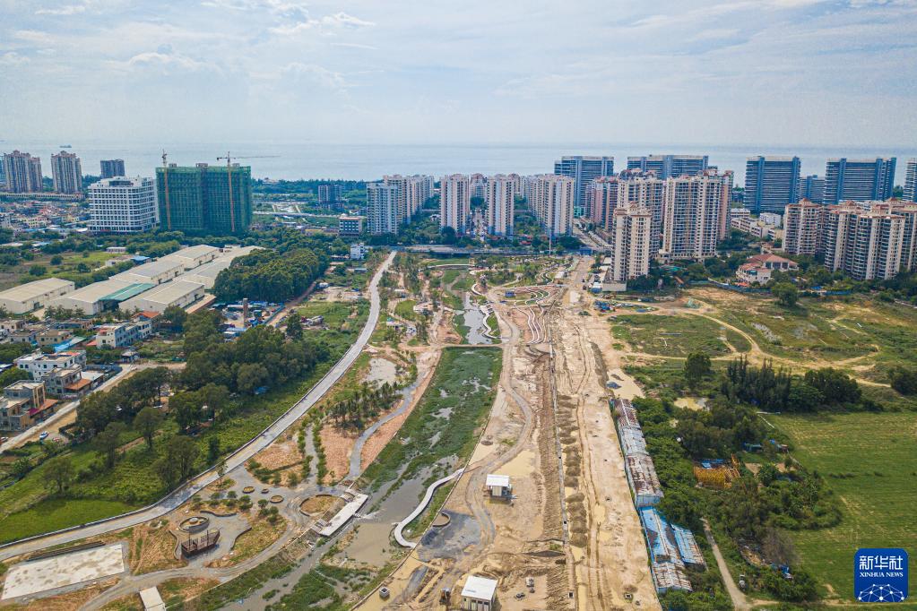 6月10日在海南省東方市拍攝的建設(shè)中的竹金溝(竹金溝公園段)(無人機(jī)照片)。